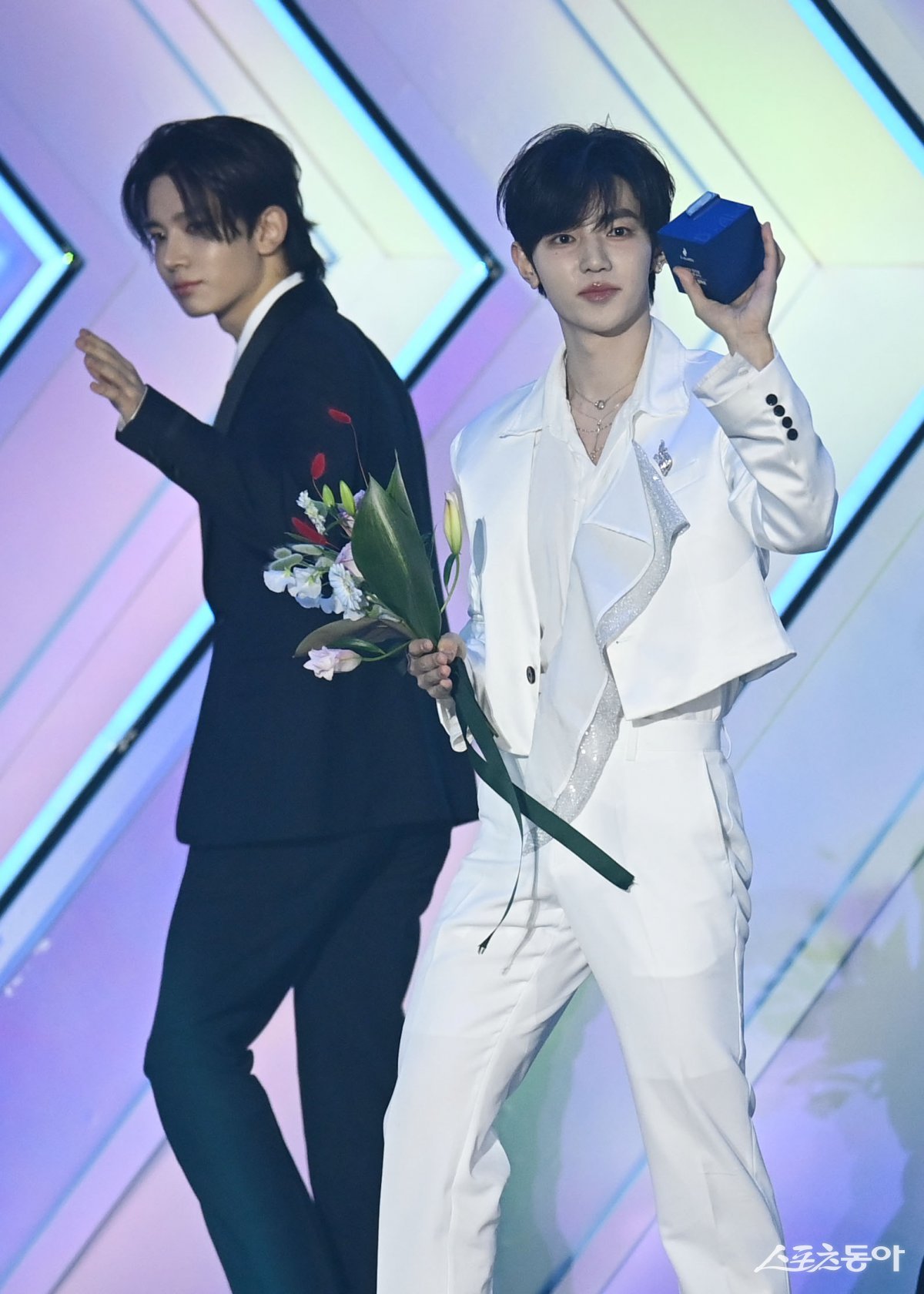 스포츠동아가 주최하고 ‘유픽(upick)’과 WSM이 주관하는 ‘유픽과 함께 하는 제1회 디 어워즈(D Awards with upick)’(주최: 스포츠동아, WSM · 주관: UPICK, WSM · 후원: G.K Link, ITTA)가 22일 서울 고려대학교 화정체육관에서 개최됐다. 디 어워즈 UPICK 인기상을 수상한 제로베이스원 장하오가 수상을 마친 후 팬들에게 인사하고 있다. 주현희 기자 teth1147@donga.com