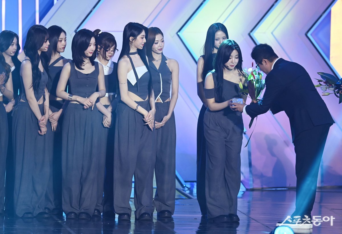 스포츠동아가 주최하고 ‘유픽(upick)’과 WSM이 주관하는 ‘유픽과 함께 하는 제1회 디 어워즈(D Awards with upick)’(주최: 스포츠동아, WSM · 주관: UPICK, WSM · 후원: G.K Link, ITTA)가 22일 서울 고려대학교 화정체육관에서 개최됐다. 디 어워즈 UPICK 인기상을 수상한 트리플에스(tripleS)가 임찬 유픽 대표로부터 트로피를 받고 있다. 주현희 기자 teth1147@donga.com