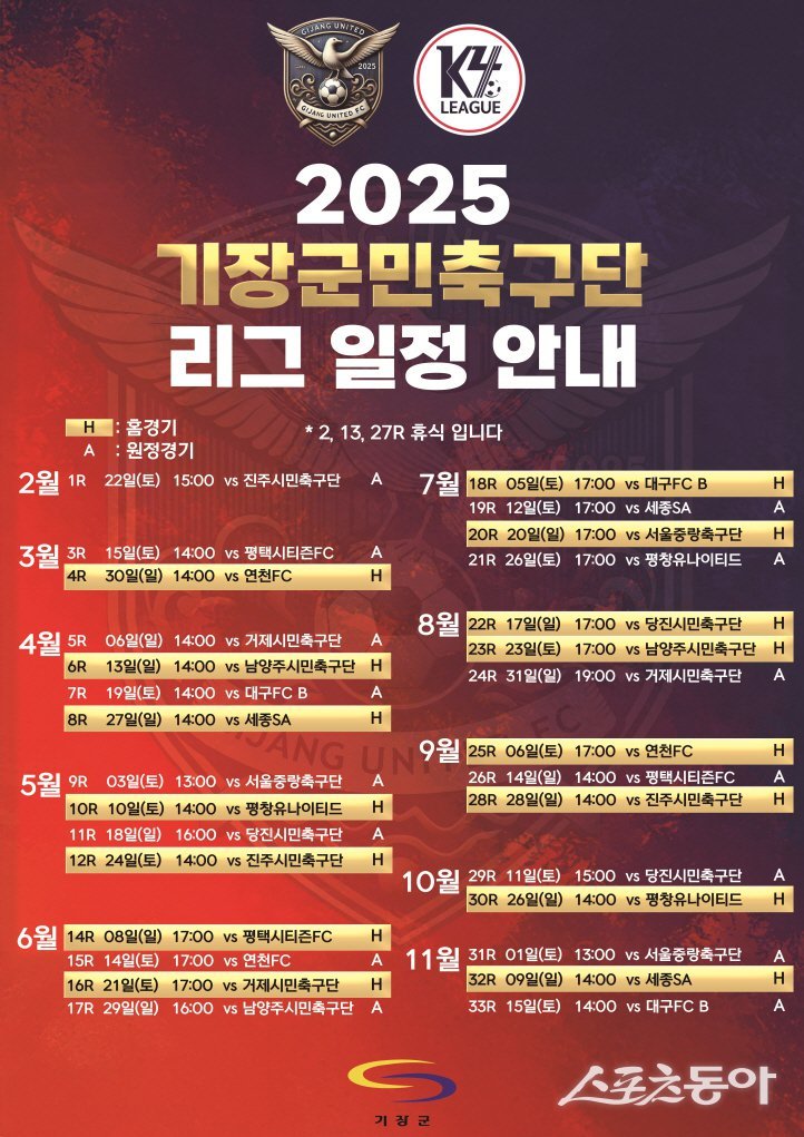 2025년 기장군민축구단 K4리그 일정표. (사진제공=기장군)