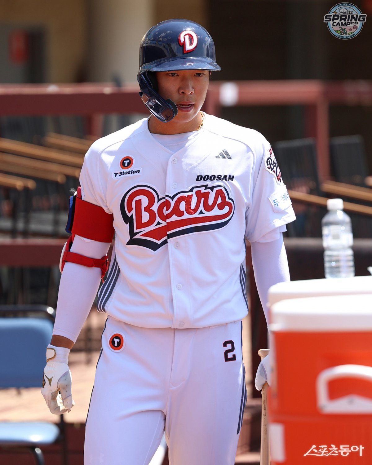 그러나 지난 시즌 슬럼프를 겪었다. 41경기에 출전해 홈런 없이 타율 0.211, 6타점에 그쳤다. 1군(71일)보다 2군(122일)에 머문 날이 많았다. 결국 지난해 11월 트레이드로 두산 유니폼을 입게 됐다. 투수 정철원, 내야수 전민재(이상 롯데)의 반대급부로 외야수 추재현, 투수 최우인과 함께 두산 유니폼을 입었다. 김민석은 “처음에는 어색했고, 적응이 안 되는 느낌이었다”고 트레이드 직후를 돌아봤다.