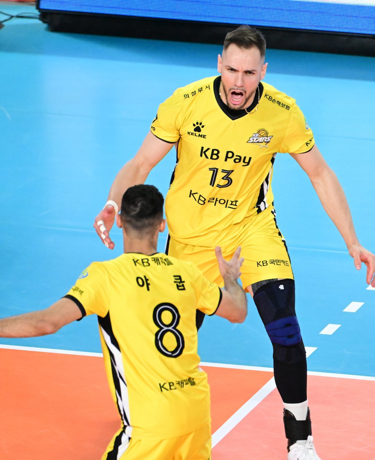 KB손해보험은 양 날개와 중앙을 고르게 활용해 삼성화재를 제압했다. 외국인 아포짓 스파이커(라이트) 비예나(17점·공격 성공률 56.52%)와 아시아쿼터 아웃사이드 히터(레프트) 야쿱(12점·56.25%) 모두 순도 높은 공격력을 뽐냈다. 여기에 황경민이 13점을 보태며 삼각편대를 이뤘다. 미들블로커(센터) 차영석도 승부처마다 속공과 블로킹으로 상대의 추격을 막고 승기를 굳히는 데 앞장섰다.