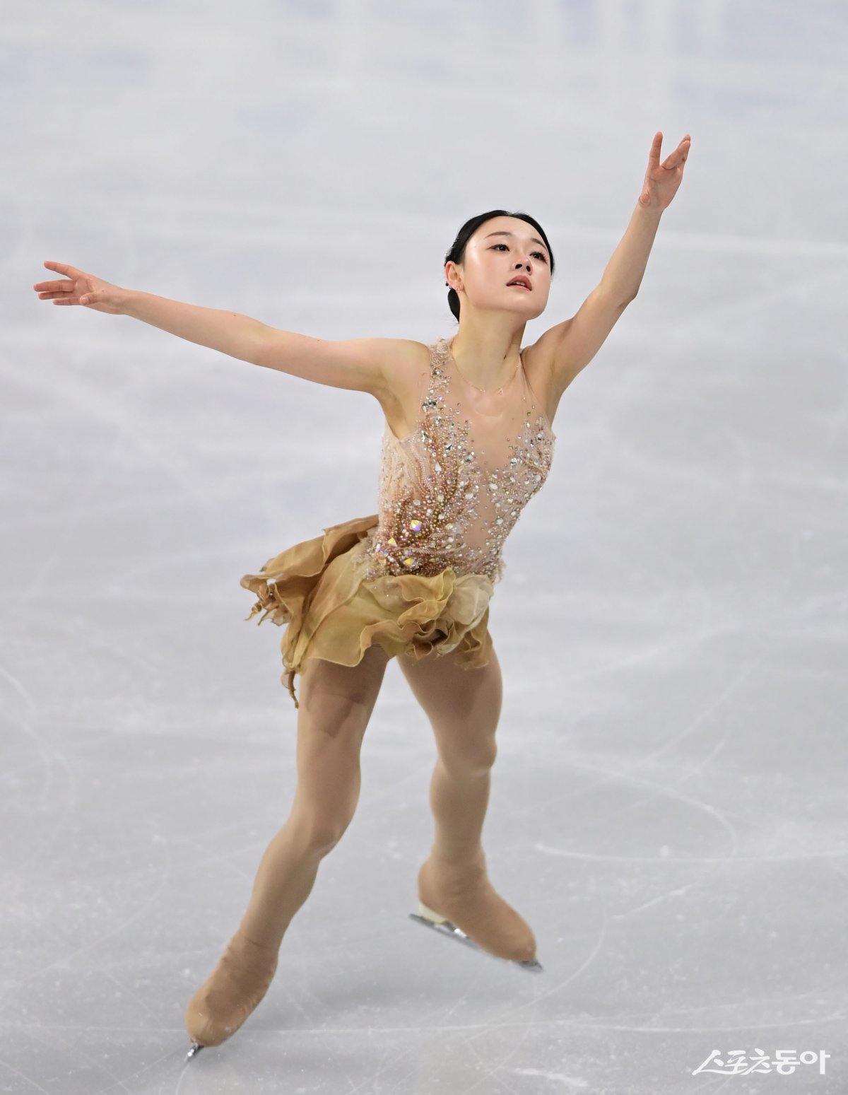 여자 싱글 김채연이 23일 서울 목동종합운동장 목동아이스링크에서 열린 ‘4대륙 피겨스케이팅 선수권대회’ 프리 스케이팅 연기를 하고 있다. 목동 | 주현희 기자 teth1147@donga.com