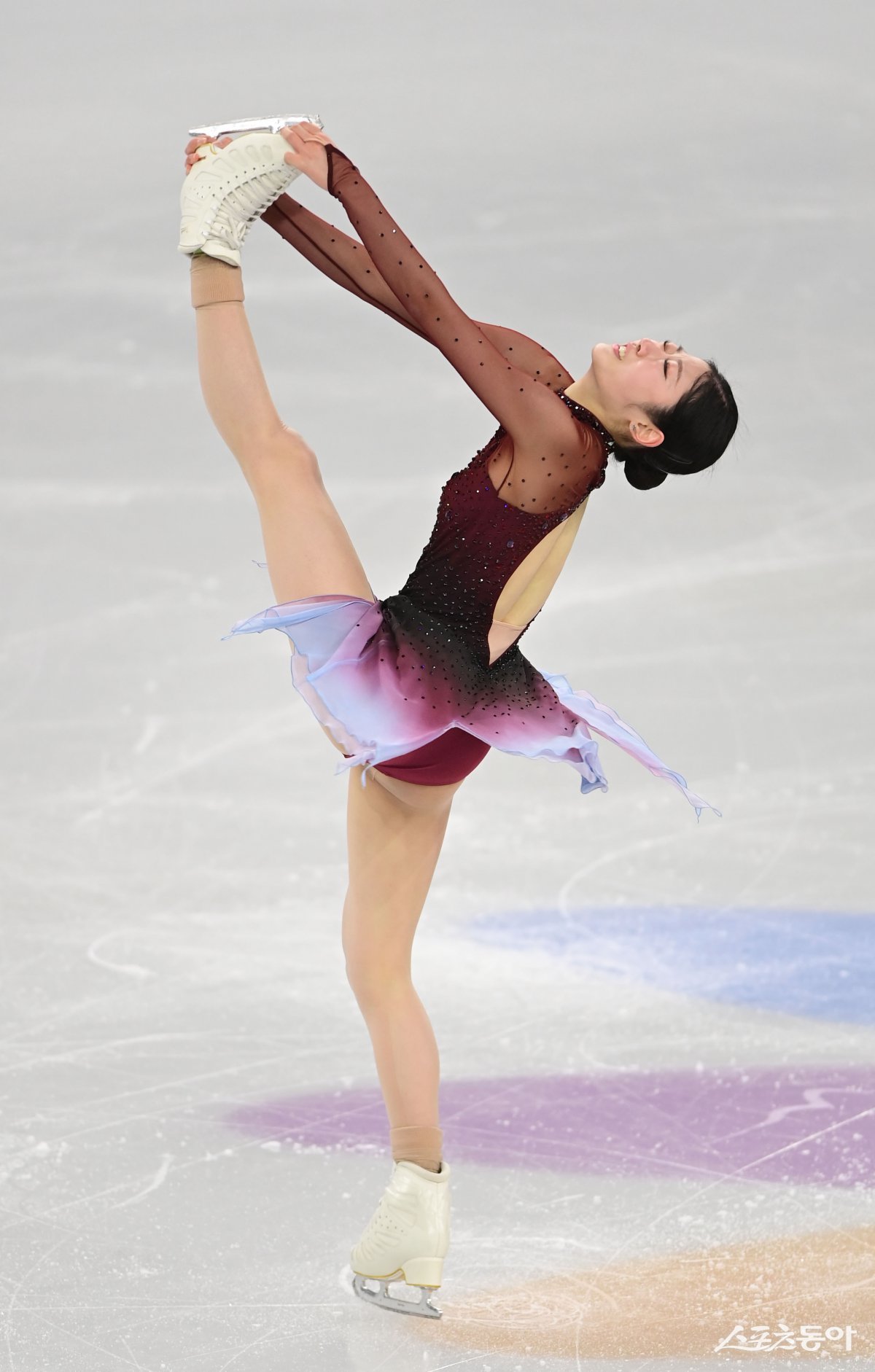 여자 싱글 이해인이 23일 서울 목동종합운동장 목동아이스링크에서 열린 ‘4대륙 피겨스케이팅 선수권대회’ 프리 스케이팅 연기를 하고 있다. 목동 | 주현희 기자 teth1147@donga.com