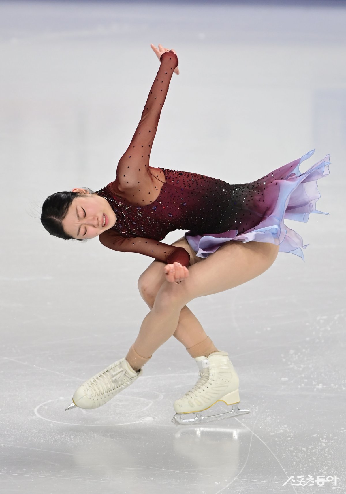 여자 싱글 이해인이 23일 서울 목동종합운동장 목동아이스링크에서 열린 ‘4대륙 피겨스케이팅 선수권대회’ 프리 스케이팅 연기를 하고 있다. 목동 | 주현희 기자 teth1147@donga.com