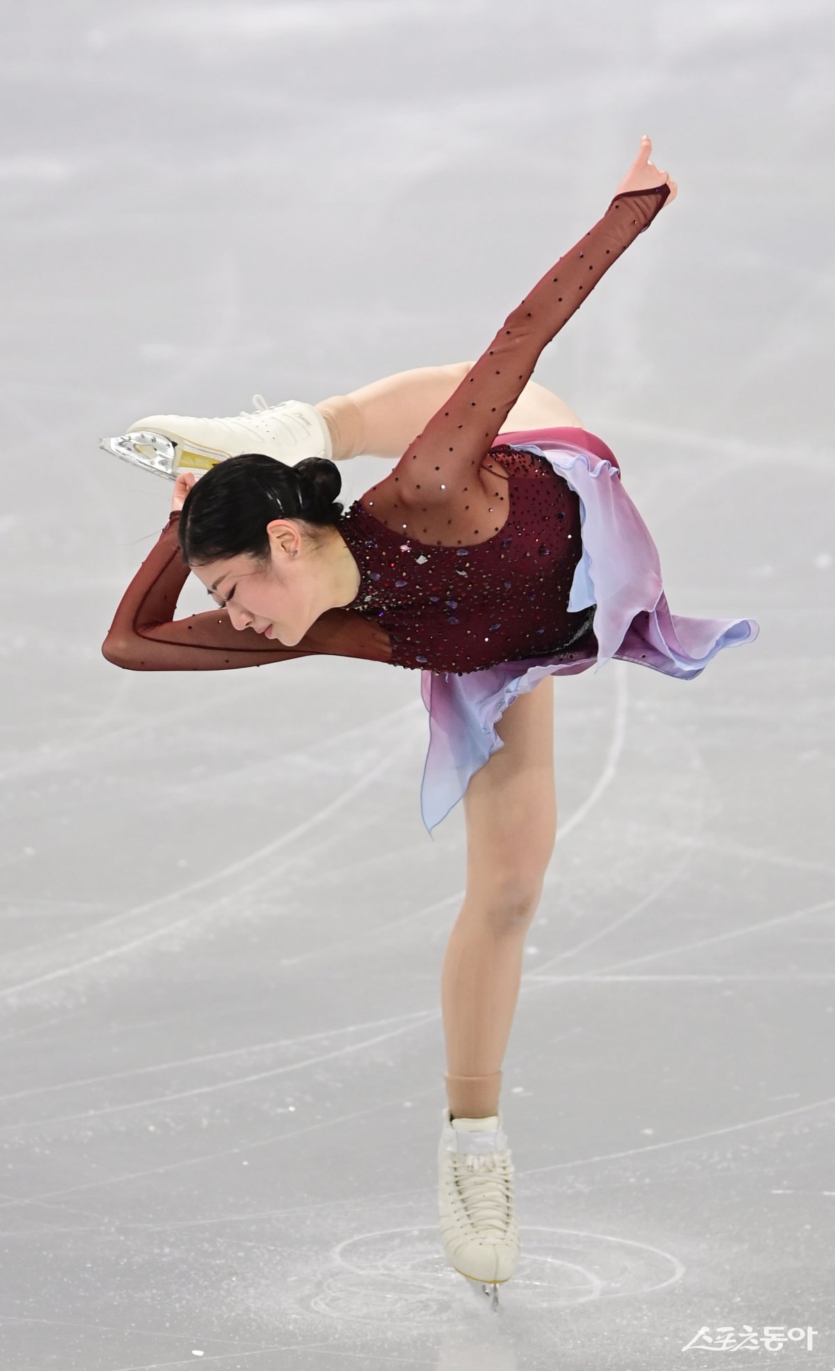 여자 싱글 이해인이 23일 서울 목동종합운동장 목동아이스링크에서 열린 ‘4대륙 피겨스케이팅 선수권대회’ 프리 스케이팅 연기를 하고 있다. 목동 | 주현희 기자 teth1147@donga.com