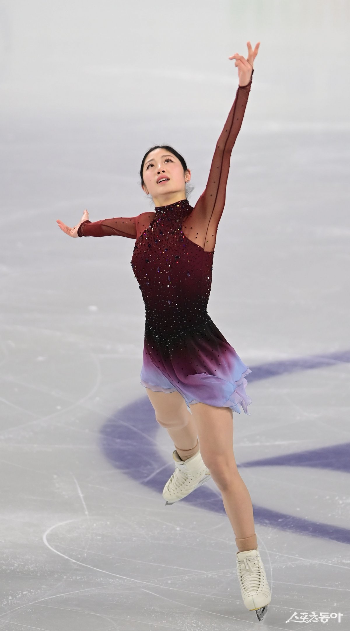 여자 싱글 이해인이 23일 서울 목동종합운동장 목동아이스링크에서 열린 ‘4대륙 피겨스케이팅 선수권대회’ 프리 스케이팅 연기를 하고 있다. 목동 | 주현희 기자 teth1147@donga.com