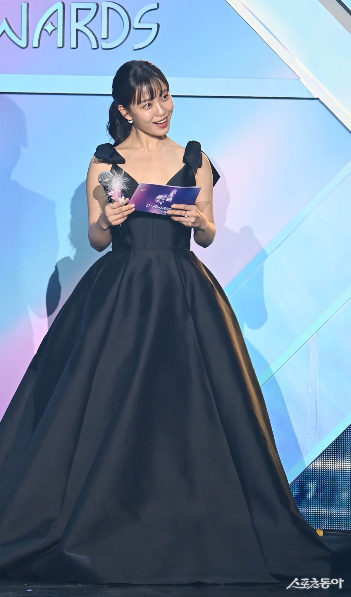 스포츠동아가 주최하고 ‘유픽과 함게하는 제1회 디 어워즈(D Awards with UPICK)’(주최: 스포츠동아, WSM · 주관: UPICK, WSM · 후원: G.K Link, ITTA)가 22일 고려대학교 화정체육관에서 열렸다. MC를 맡은 고민시가 시상식을 진행하고 있다. 주현희 기자 teth1147@donga.com
