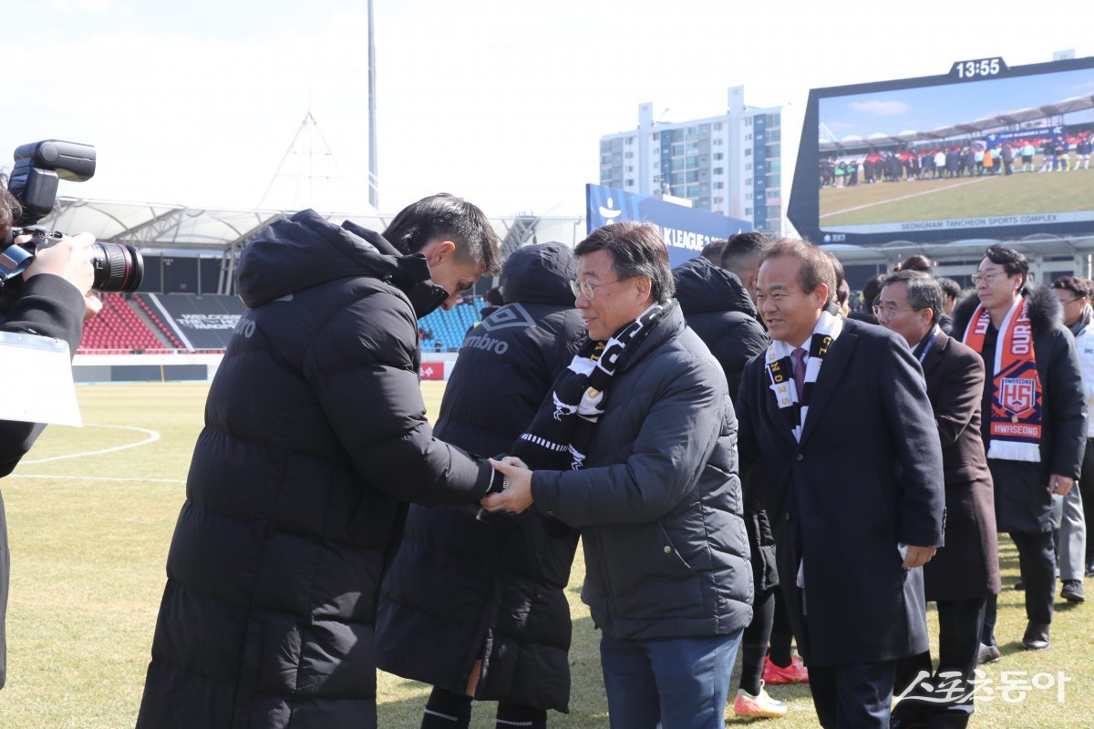 성남시장은 23일 오후 2시 탄천종합운동장에서 열린 ‘2025 하나은행 K리그2’ 성남FC와 화성FC의 홈 개막전에 참석했다.