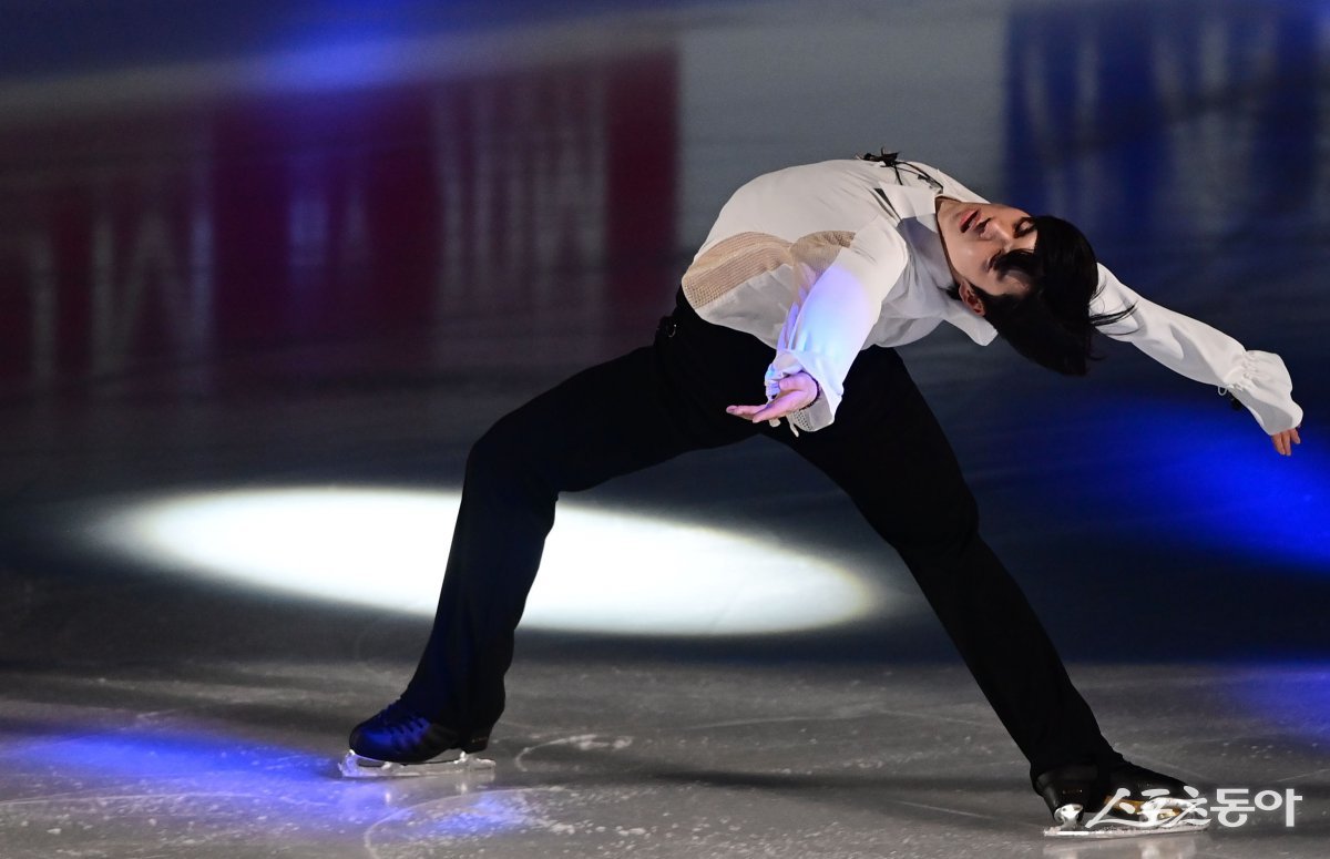 차준환이 23일 서울 목동종합운동장 목동아이스링크에서 열린 ‘4대륙 피겨스케이팅 선수권대회’ 갈라쇼에서 연기를 하고 있다. 목동 | 주현희 기자 teth1147@donga.com