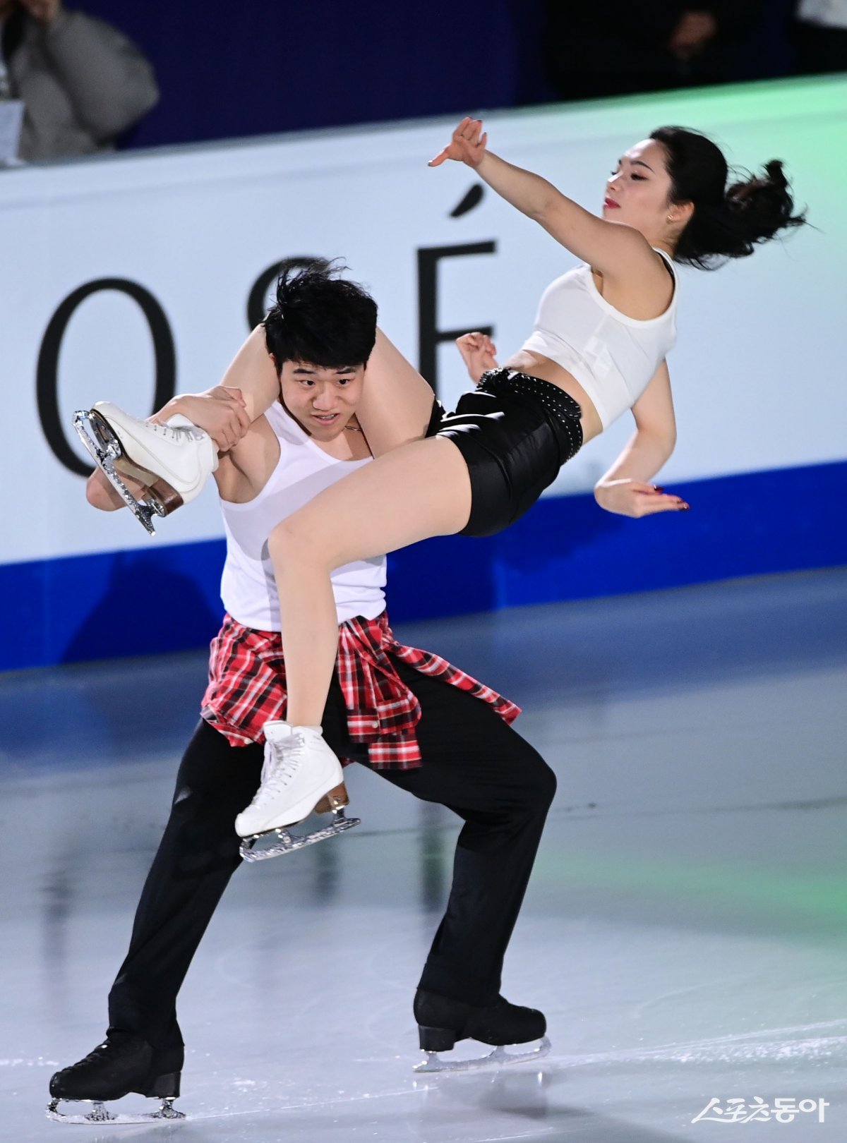 임해나, 권예가 23일 서울 목동종합운동장 목동아이스링크에서 열린 ‘4대륙 피겨스케이팅 선수권대회’ 갈라쇼에서 연기를 하고 있다. 목동 | 주현희 기자 teth1147@donga.com