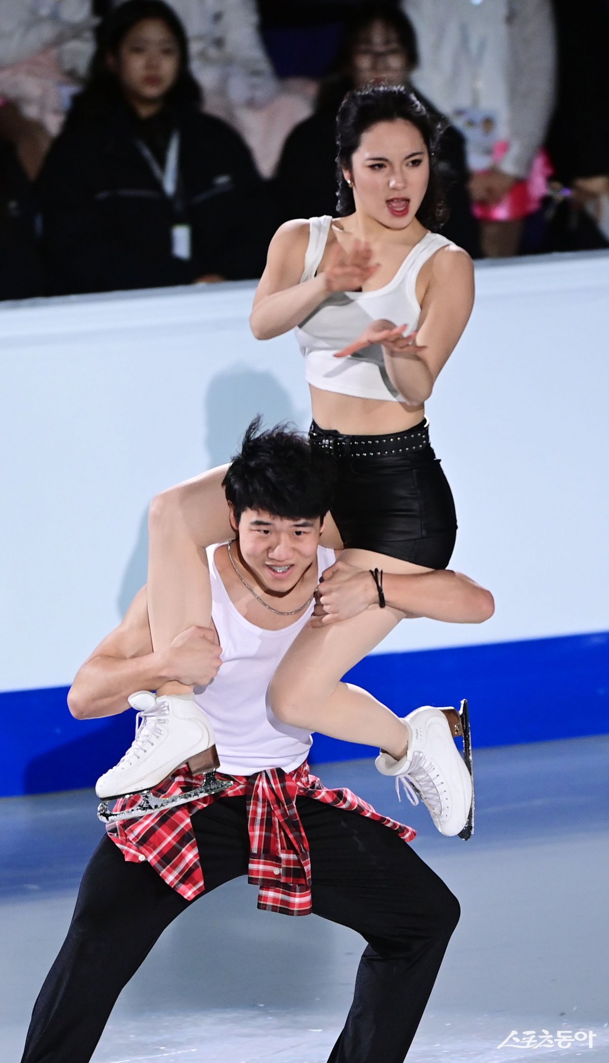 임해나, 권예가 23일 서울 목동종합운동장 목동아이스링크에서 열린 ‘4대륙 피겨스케이팅 선수권대회’ 갈라쇼에서 연기를 하고 있다. 목동 | 주현희 기자 teth1147@donga.com