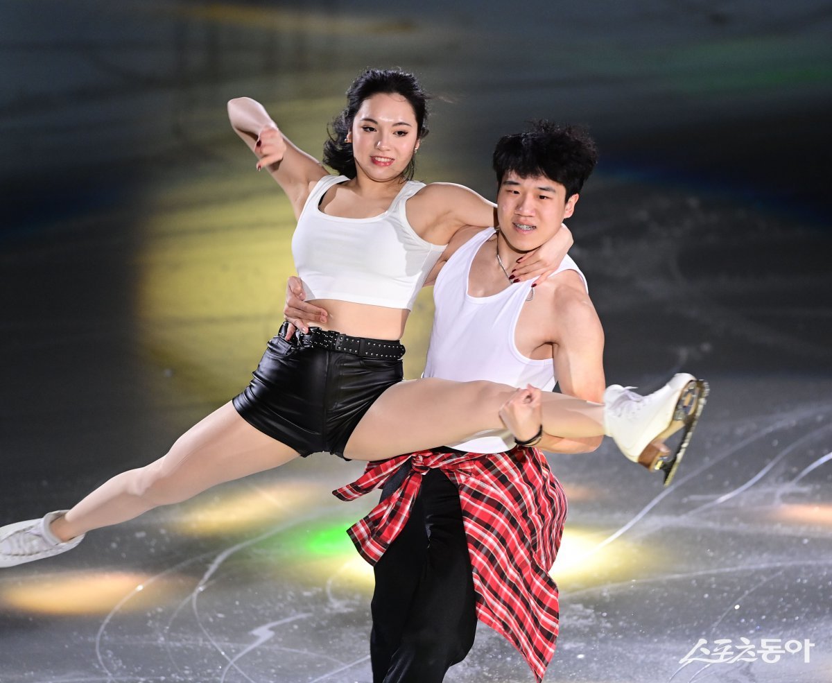 임해나, 권예가 23일 서울 목동종합운동장 목동아이스링크에서 열린 ‘4대륙 피겨스케이팅 선수권대회’ 갈라쇼에서 연기를 하고 있다. 목동 | 주현희 기자 teth1147@donga.com