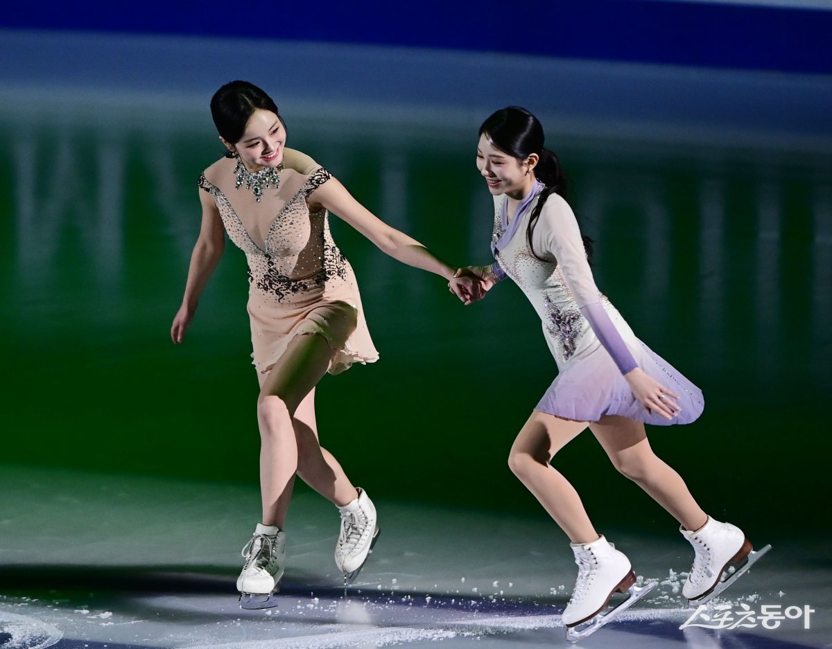 임은수, 최다빈이 23일 서울 목동종합운동장 목동아이스링크에서 열린 ‘4대륙 피겨스케이팅 선수권대회’ 갈라쇼에서 연기를 하고 있다. 목동 | 주현희 기자 teth1147@donga.com