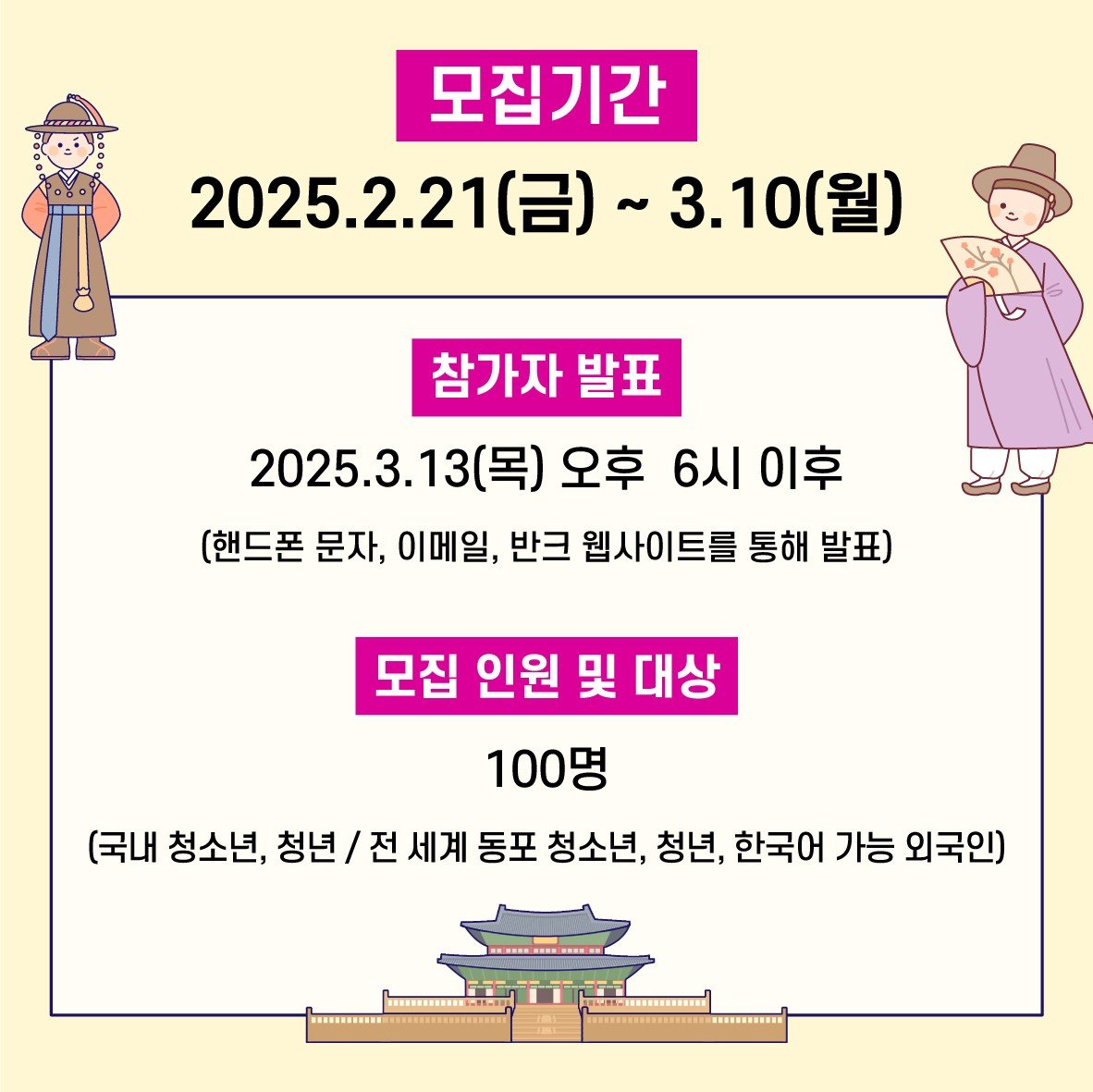 이에 반크와 궁능유적본부는 다가오는 2억 명의 한류 팬 시대에 맞춰, 궁궐과 왕릉을 재조명하고, 그 역사적 가치를 현대적인 시각으로 재해석할 글로벌 궁능 홍보대사를 모집한다.