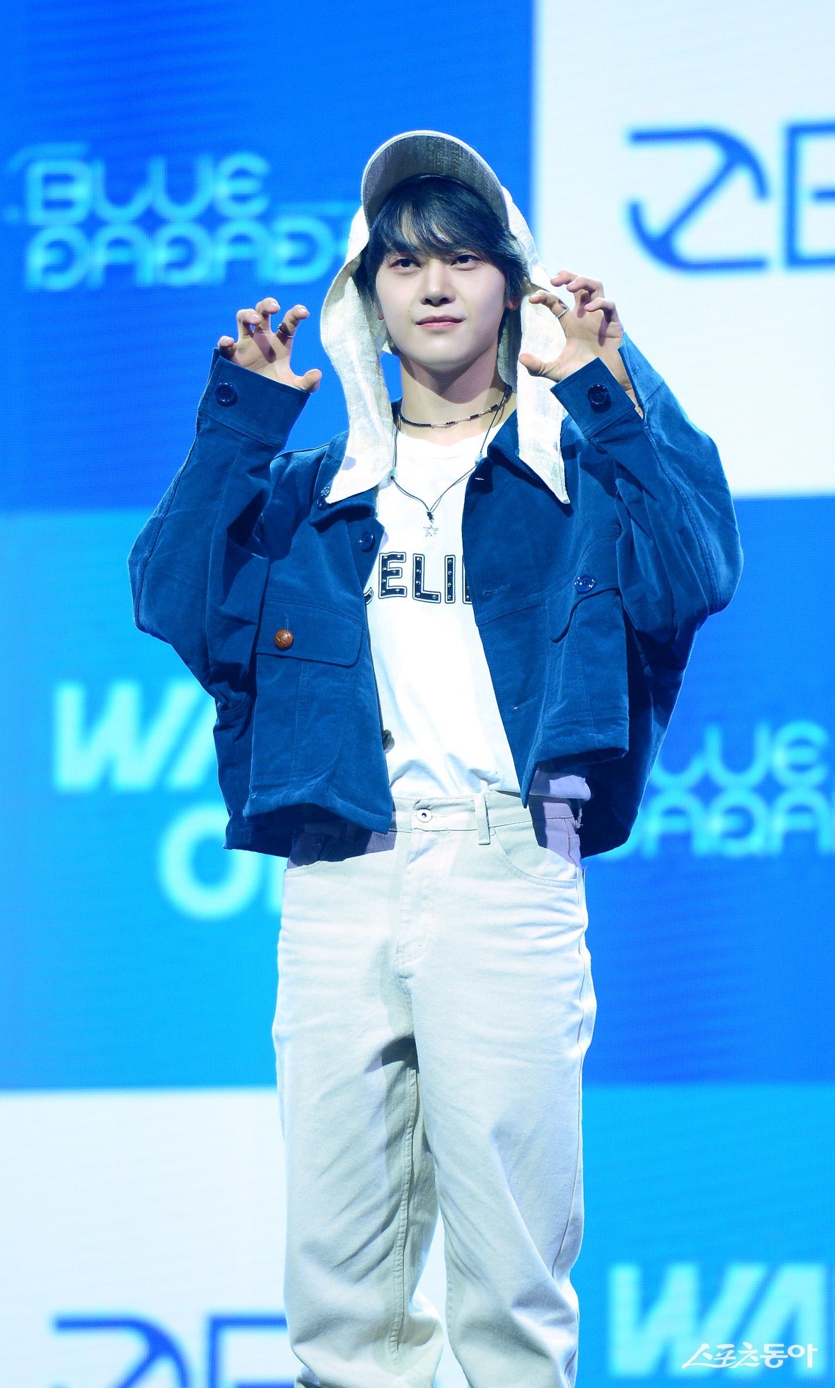 그룹 제로베이스원(ZEROBASEONE) 석매튜가 24일 서울 용산구 블루스퀘어에서 열린 미니 5집 ‘블루 파라다이스’(BLUE PARADISE) 발매 쇼케이스에서 포토타임을 갖고 있다. 김종원 기자 won@donga.com