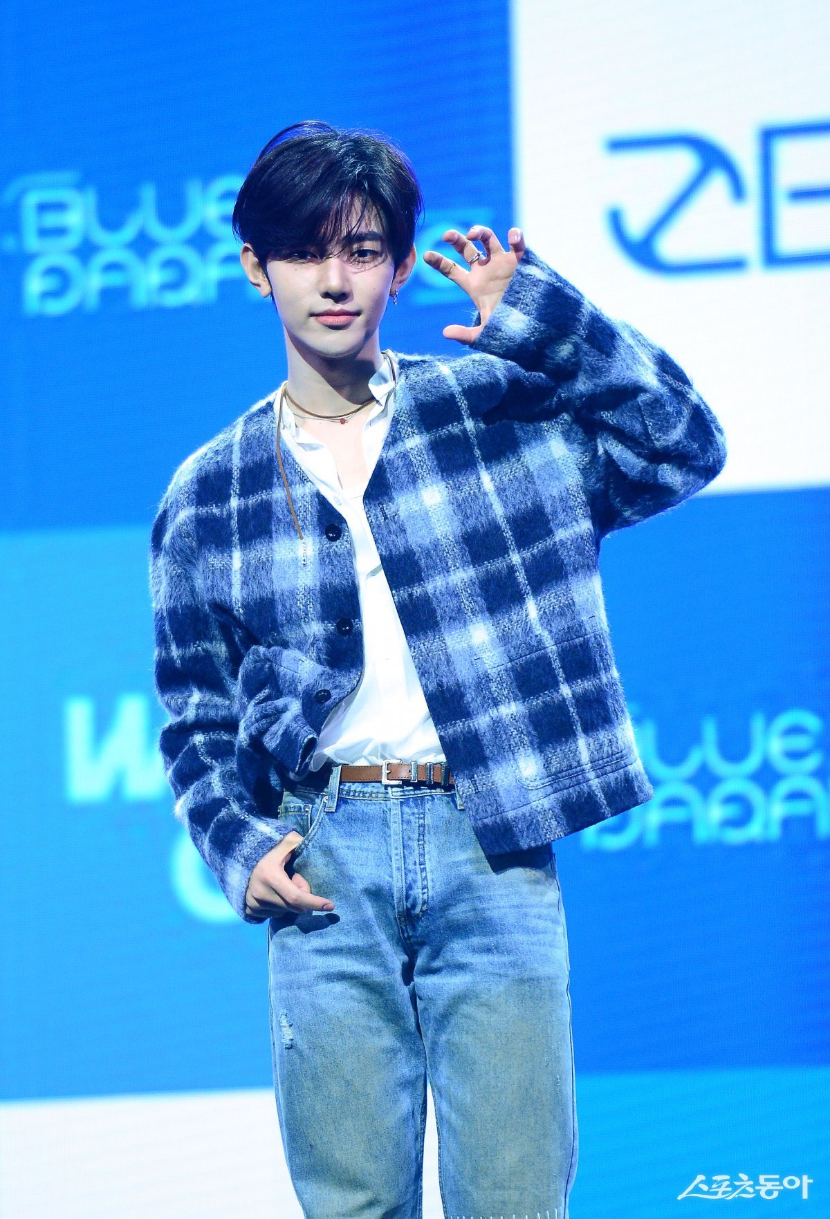 그룹 제로베이스원(ZEROBASEONE) 장하오가 24일 서울 용산구 블루스퀘어에서 열린 미니 5집 ‘블루 파라다이스’(BLUE PARADISE) 발매 쇼케이스에서 포토타임을 갖고 있다. 김종원 기자 won@donga.com