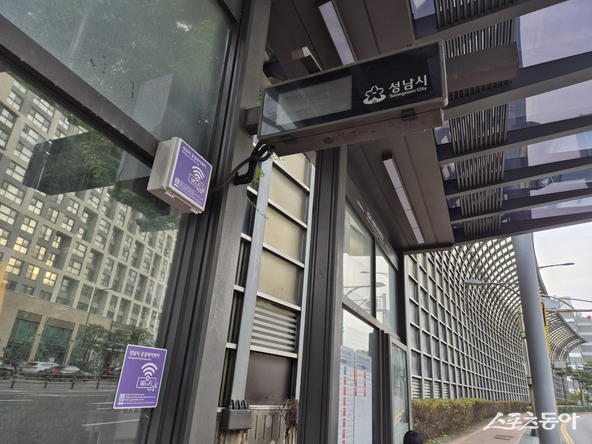 버스정류장 자동으로 연결되는 공공와이파이 모습. 사진제공ㅣ성남시