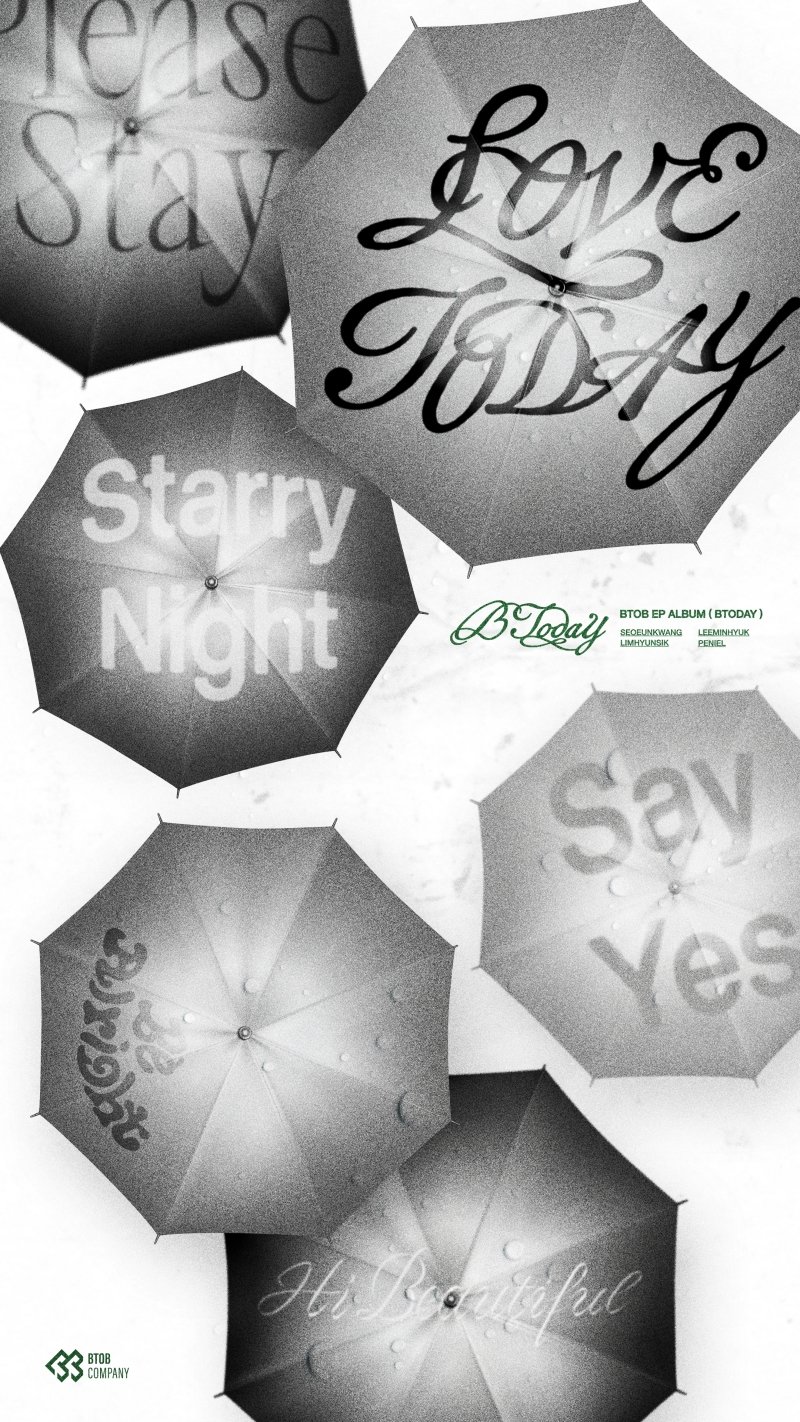 공개된 이미지는 늘어선 우산 위로 새 앨범 트랙 정보가 나열되었으며, 각기 다른 폰트로 곡명이 적혀 있어 비투비가 각각의 곡을 통해 보여줄 다채로운 감성을 예고했다.