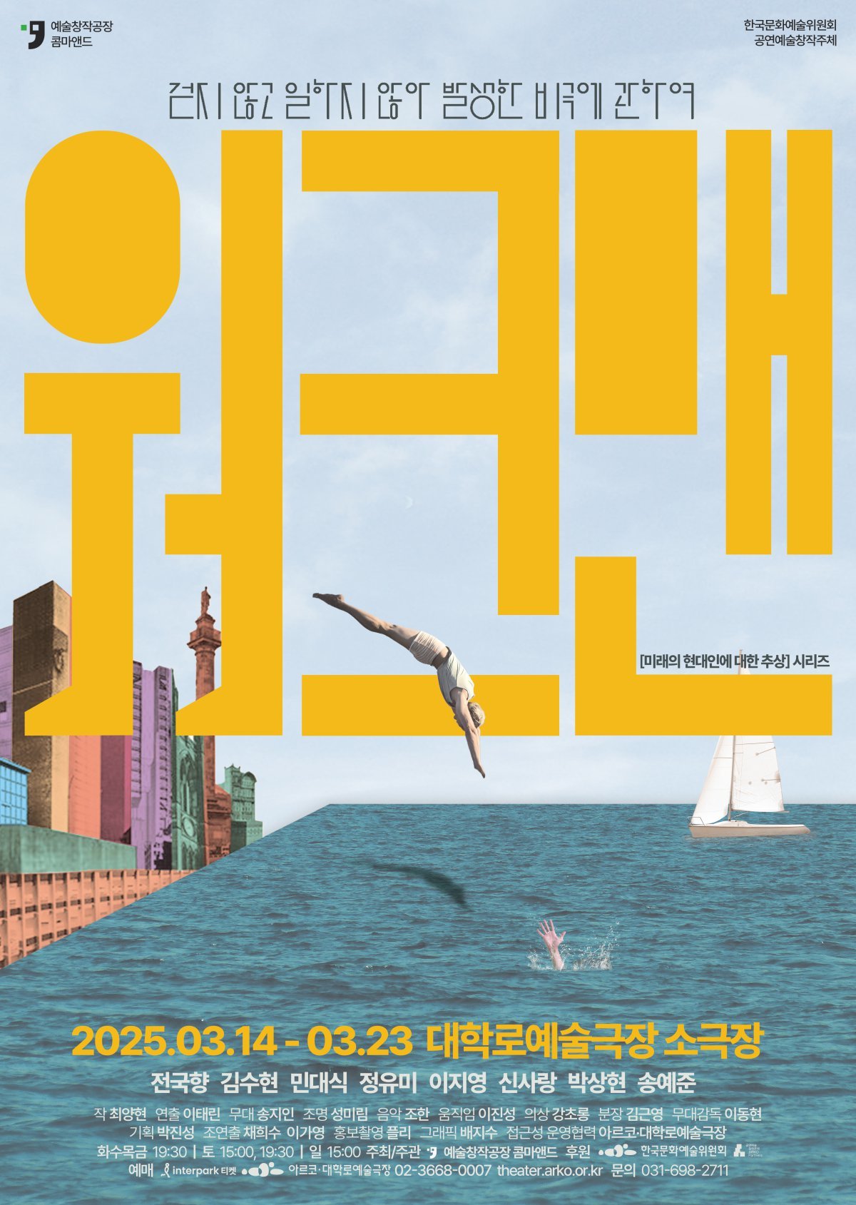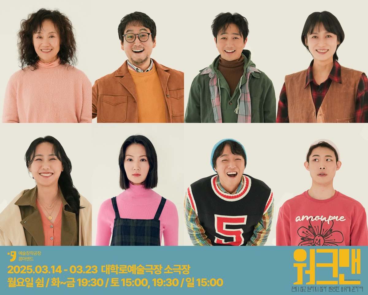 여러 군상의 인물들이 각자의 이야기를 무대에서 풀어나가는 연극 ‘워크맨’은 3월 14일부터 3월 23일까지 대학로예술극장 소극장에서 만나볼 수 있으며 한국문화예술위원회와 인터파크에서 예매가 가능하다.