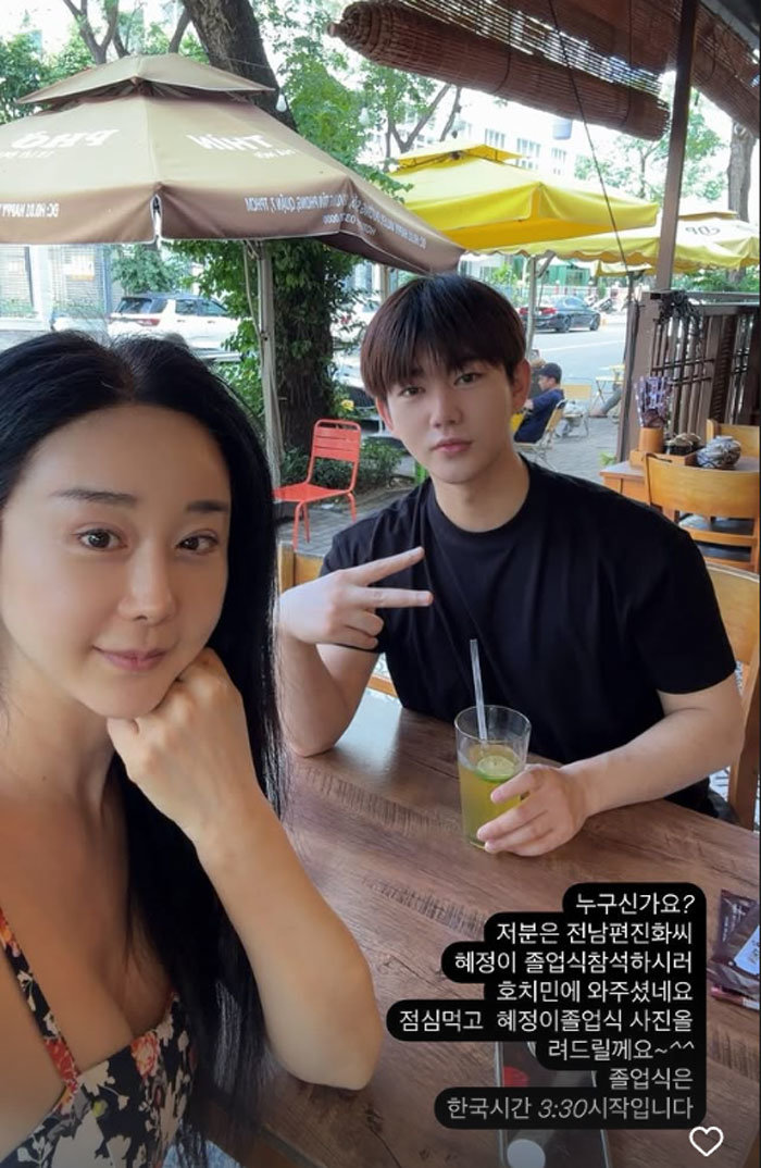 함소원은 25일 자신의 SNS 스토리를 통해 전 남편 진화와 함께한 사진을 공개했다. 관련해 그는 “저 분은 전 남편 진화 씨. 혜정이 졸업식 참석하시러 호찌민에 와주셨네요”라고 설명했다.