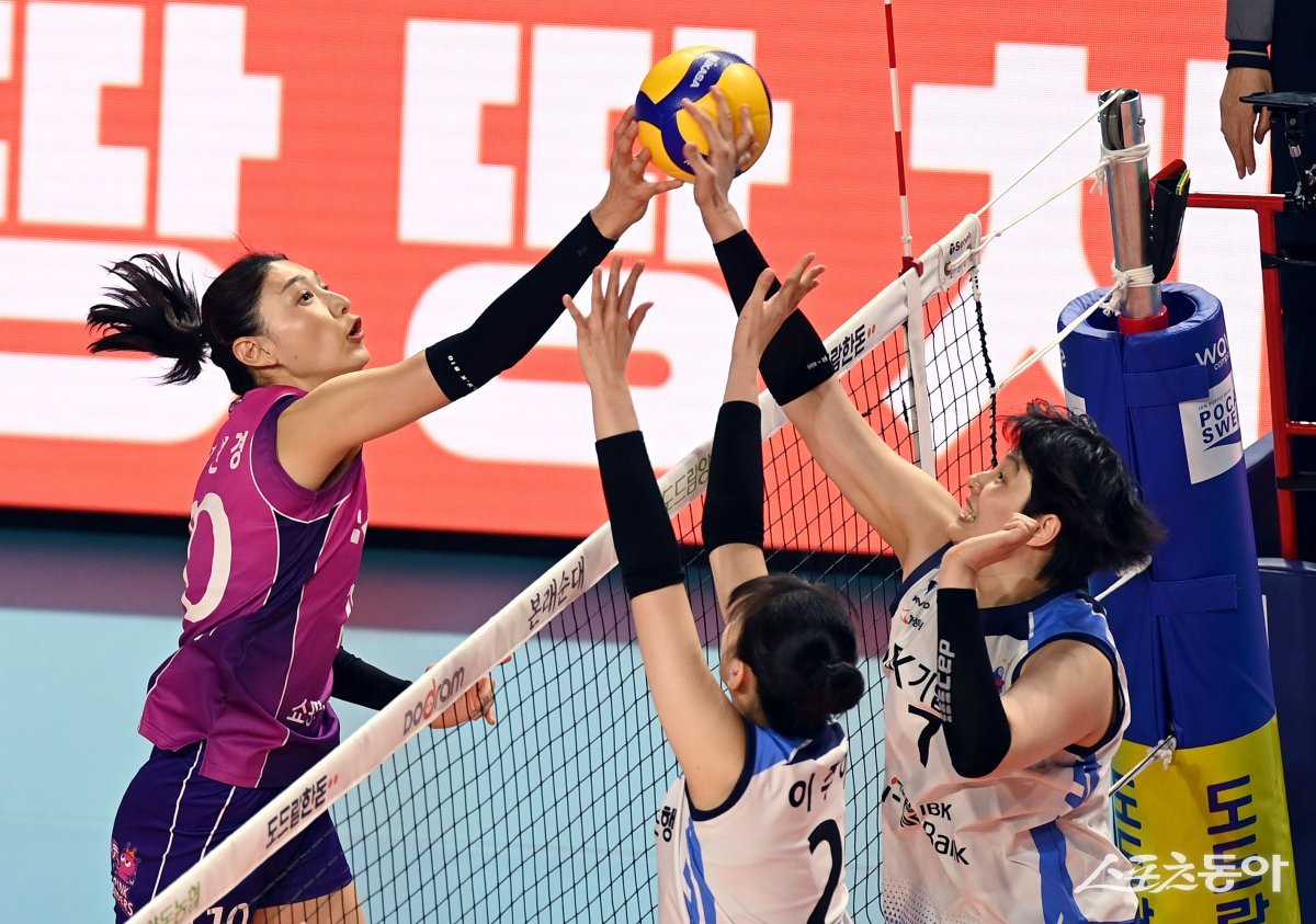 25일 인천 삼산월드체육관에서 ‘도드람 2024-2025 V리그’ 흥국생명과 IBK기업은행의 여자부 경기가 열렸다. 흥국생명 김연경이 IBK기업은행 블로커를 피해 공격을 펼치고 있다. 인천 | 김민성 기자 marineboy@donga.com