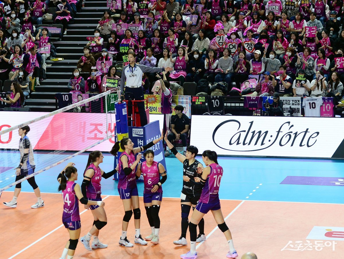 25일 인천 삼산월드체육관에서 ‘도드람 2024-2025 V리그’ 흥국생명과 IBK기업은행의 여자부 경기가 열렸다. 경기장을 가득메운 배구팬들이 김연경을 응원하고 있다. 인천 | 김민성 기자 marineboy@donga.com