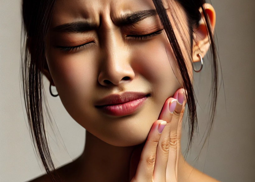 턱관절 통증을 호소하고 있는 여성 환자 사진출처|ChatGPT 제작, 자생한방병원