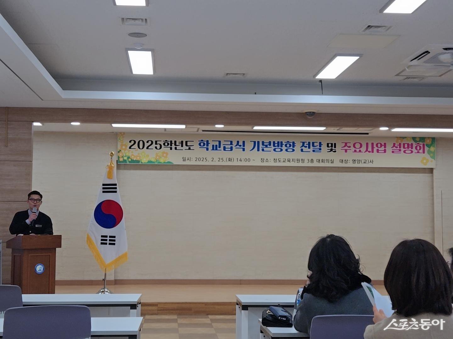 청도교육지원청(교육장 이시균)은 지난 25일 관내 초,중,고 영양교사 및 영양사를 대상으로 2025학년도 학교급식 주요 추진사업 설명 및 위생관리 연수를 실시했다.올해 학교급식 주요사업 설명