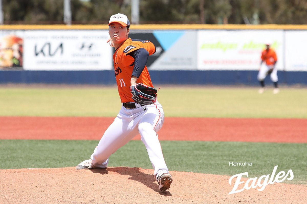한화 이글스 투수 엄상백(29)은 25일 일본 오키나와 킨구장에서 열린 KIA 타이거즈와 연습경기에 선발등판해 2이닝 1실점을 기록했다. 오키나와 2차 스프링캠프에서 치른 첫 실전이었다.