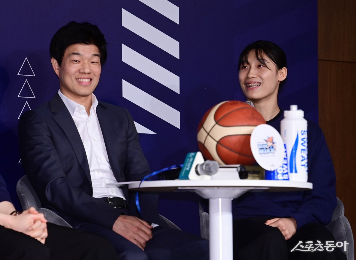 26일 서울 마포구 상암동 스탠포드호텔서울에서 열린 ‘하나은행 2024-2025 여자프로농구 포스트시즌’ 미디어데이에서 삼성생명 이해란이 밸런스 게임에 답하고 있다. 주현희 기자 teth1147@donga.com