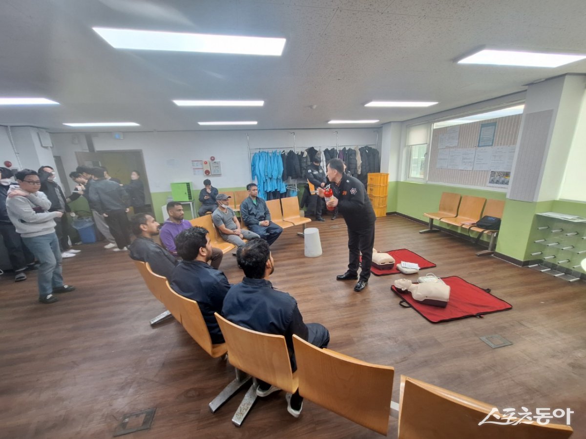 이번 교육은 1차 전지 사업장에 근무하는 외국인 근로자 및 관계자를 대상으로 화재 예방과 초기 대응 능력을 강화하기 위한 목적으로 진행됐으며, 소방시설 사용법, 화재 발생 시 대피 요령, 초기 진화 방법 등을 중점적으로 교육했다.