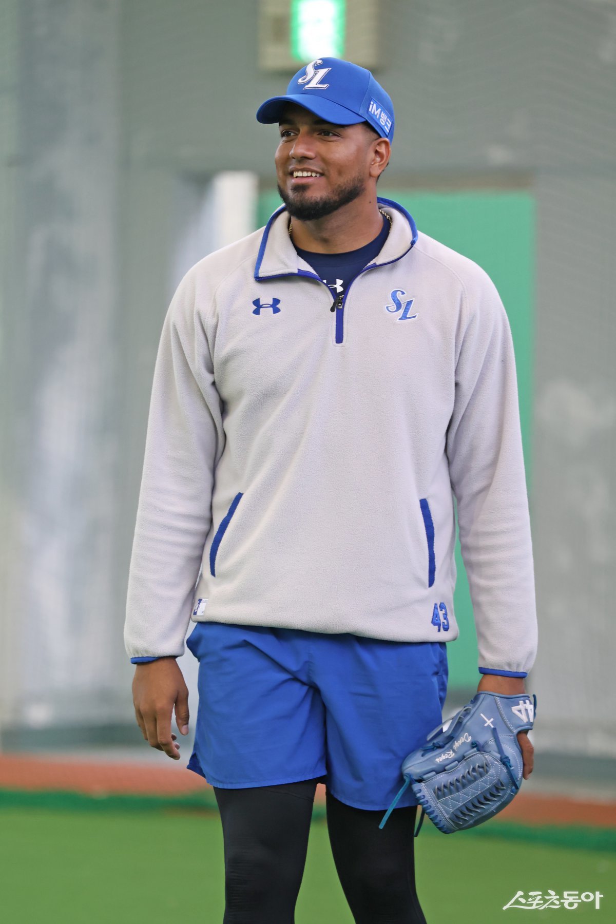 지난해 삼성 유니폼을 입고 KBO리그에 데뷔한 레예스는 정규시즌 26경기(144이닝)에 선발등판해 11승4패, 평균자책점(ERA) 3.81, 탈삼진 114개, 이닝당 출루허용(WHIP) 1.31의 호성적을 거뒀다. 포스트시즌(PS) 들어서는 1선발 역할까지 늠름하게 수행했다. 또 다른 외국인투수 코너 시볼드(28경기·11승6패·ERA 3.43)가 부상 때문에 미국으로 돌아간 가운데 플레이오프(PO)부터 한국시리즈(KS)까지 총 3경기에 선발등판해 전승을 거두며 에이스로 활약했다. 이처럼 역투한 덕분에 삼성과 총액 120만 달러(약 17억3000만 원)에 재계약할 수 있었다.