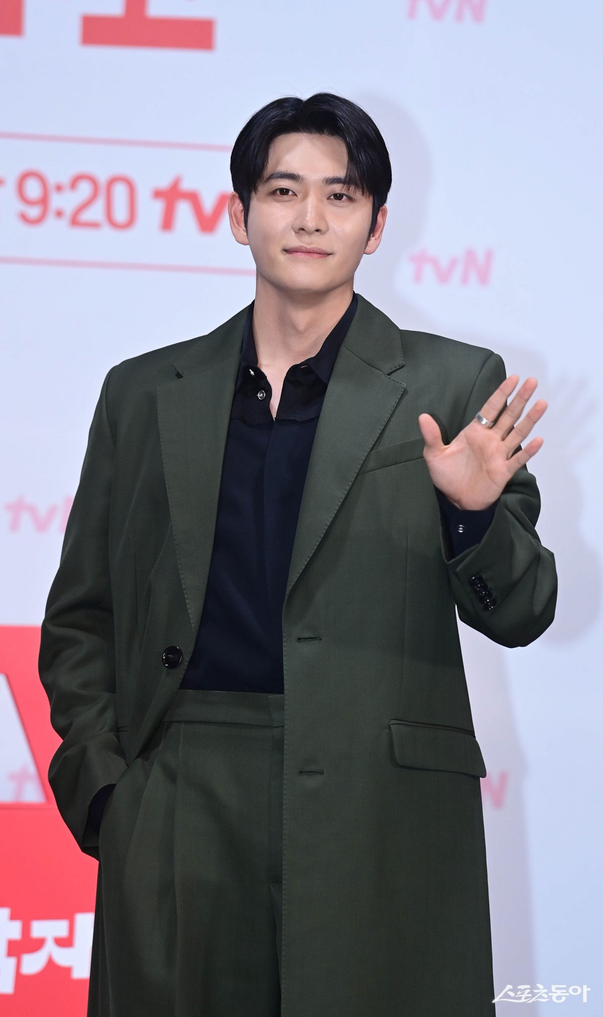 배우 강태오가 27일 서울 구로구 신도림동 라마다서울신도림호텔에서 열린 tvN 새 토일드라마 ‘감자연구소’ 제작발표회에서 포즈를 취하고 있다. 주현희 기자 teth1147@donga.com