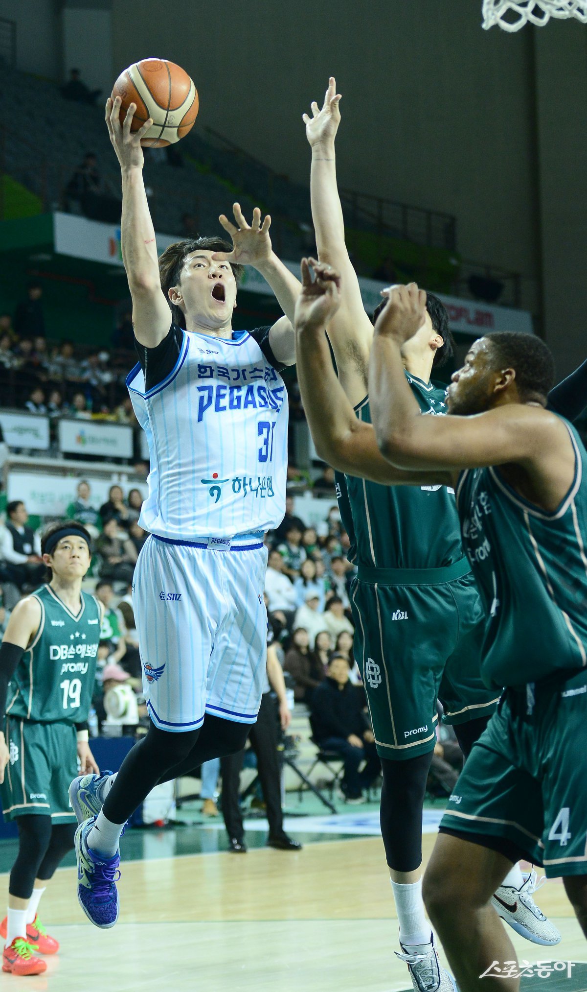 27일 원주종합체육관에서 열린 ‘2024-2025 프로농구’ DB와 한국가스공사 경기에서 한국가스공사 김준일이 DB의 수비를 뚫고 레이업슛을 하고 있다. 원주|김종원 기자 won@donga.com
