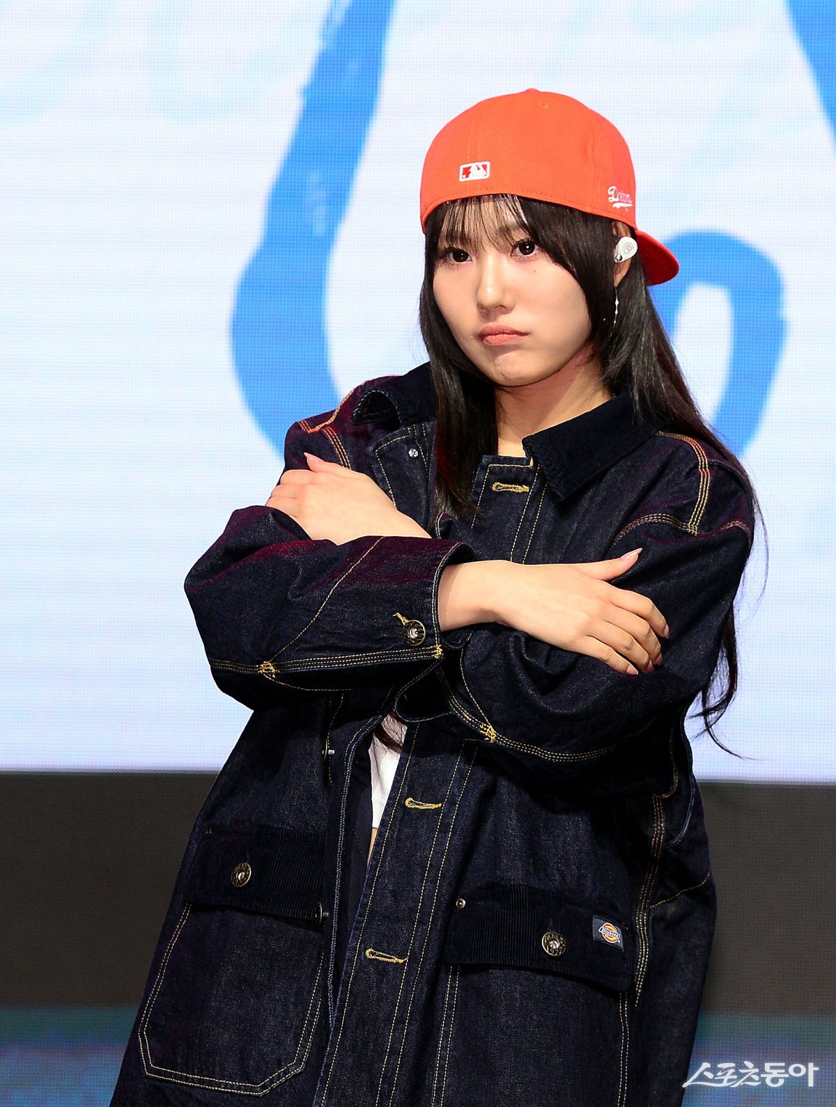 영파씨(YOUNG POSSE) 스페셜 앨범 ‘콜드(COLD)‘ 발매 기념 쇼케이스가 4일 서울 서대문구 예스24 원더로크홀에서 열렸다. 영파씨 한지은이 카메라를 향해 포즈를 취하고 있다. 김민성 기자 marineboy@donga.com