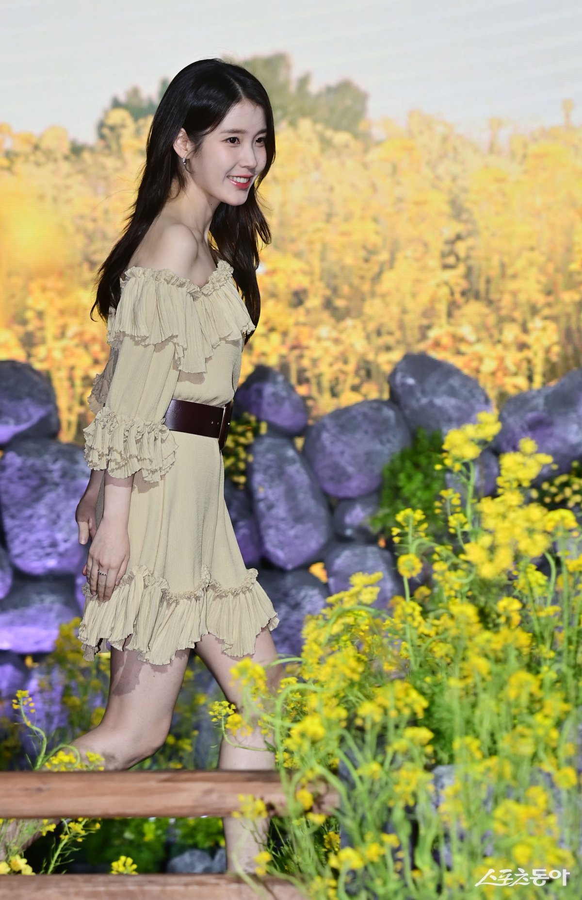 가수 겸 배우 아이유가 5일 서울 영등포구 콘래드서울에서 열린 넷플릭스 시리즈 ‘폭싹 속았수다’ 제작발표회에 입장하고 있다. 주현희 기자 teth1147@donga.com