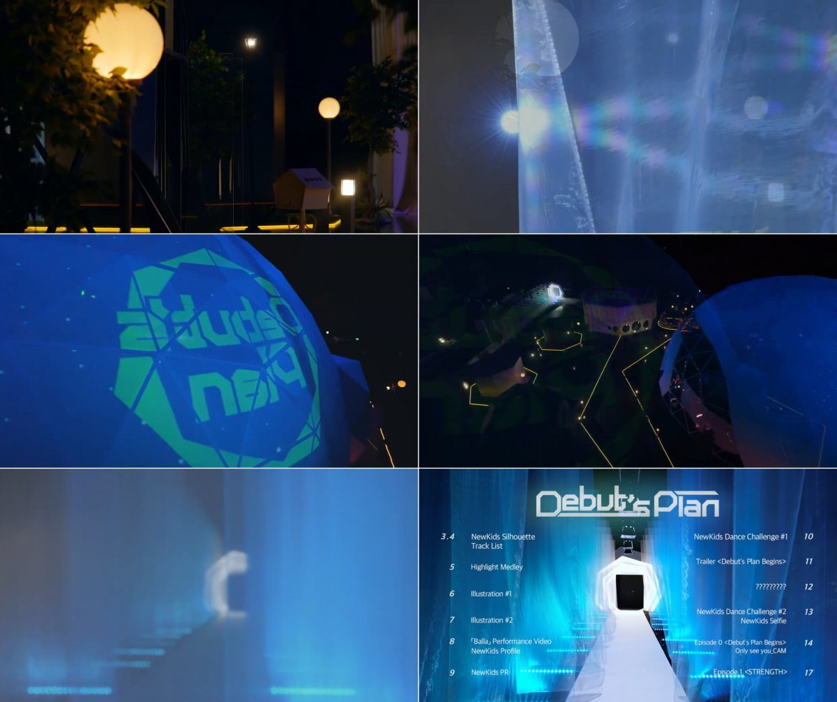 로고 모션과 동시에 선보인 스케줄 영상은 피아노 선율을 타고 출발했다. 카메라 무빙을 따라 여러 군데의 스팟들을 하나씩 비추고 무대 중앙에 마련된 대형 문에 시선이 고정되면서 ‘데뷔스 플랜’의 초대형 프로젝트 일정들을 알리는 스케줄이 담겼다.