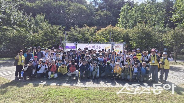 지난해 외씨버선길 걷기행사 참가자들이 파이팅하고 있다. 사진제공 ㅣ 봉화군