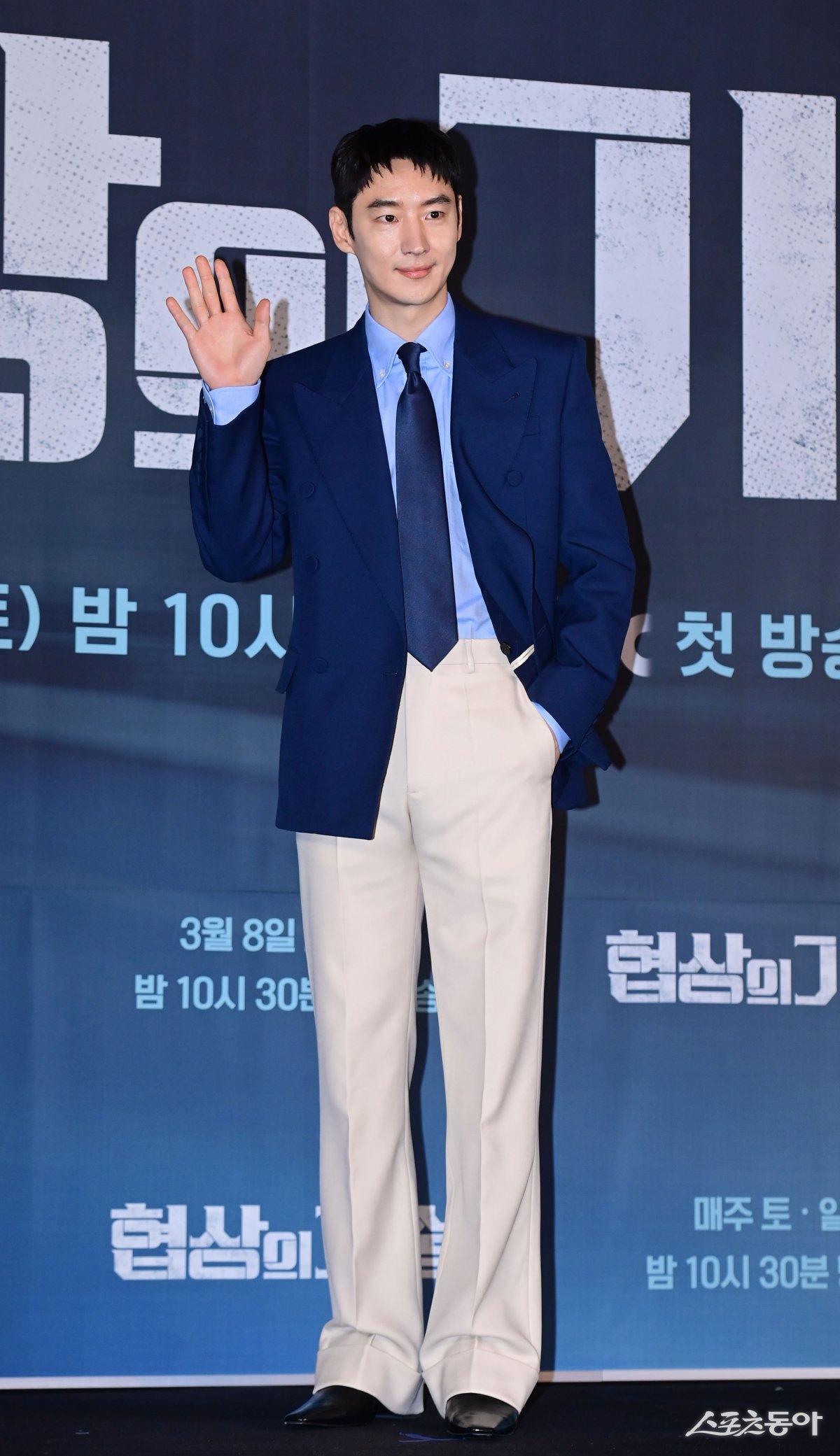 배우 이제훈이 6일 서울 구로구 라마다서울신도림호텔에서 열린 JTBC 새 토일드라마 ‘협상의 기술’ 제작발표회에서 포즈를 취하고 있다. 주현희 기자 teth1147@donga.com