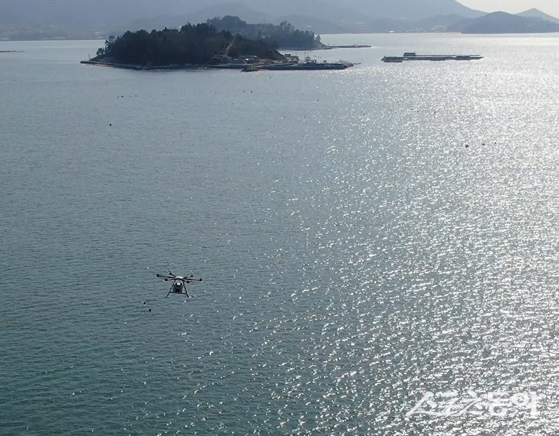 고흥군 득량도에서 진행된 드론배송 실증. 사진제공=고흥군