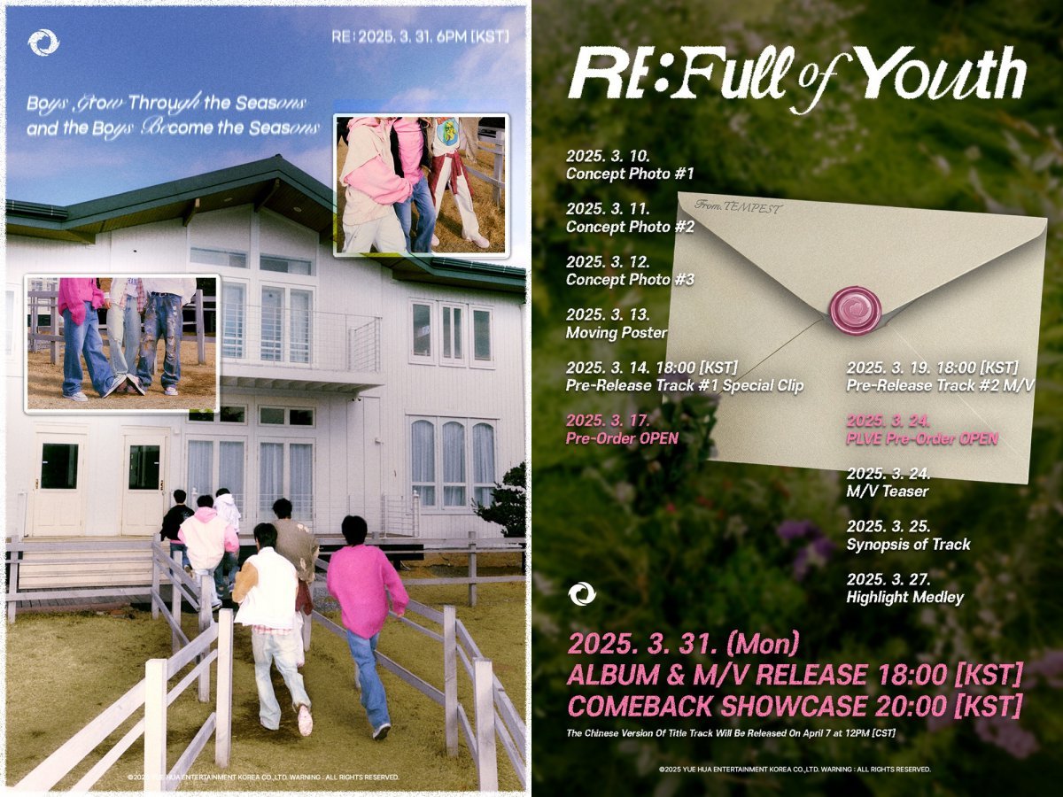 템페스트는 지난 6일 공식 SNS를 통해 커밍순 포스터를 공개하며 오는 31일 여섯 번째 미니앨범 ‘RE: Full of Youth(리: 풀 오브 유스)’로 컴백하는 것을 공식화했다.