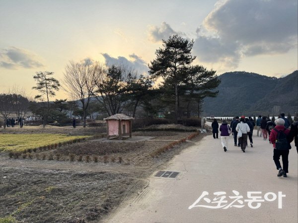 예천 회룡포를 방문한 레일 크루즈 관광객들이 마을을 둘러보고 있다. 사진제공 ㅣ 예천군