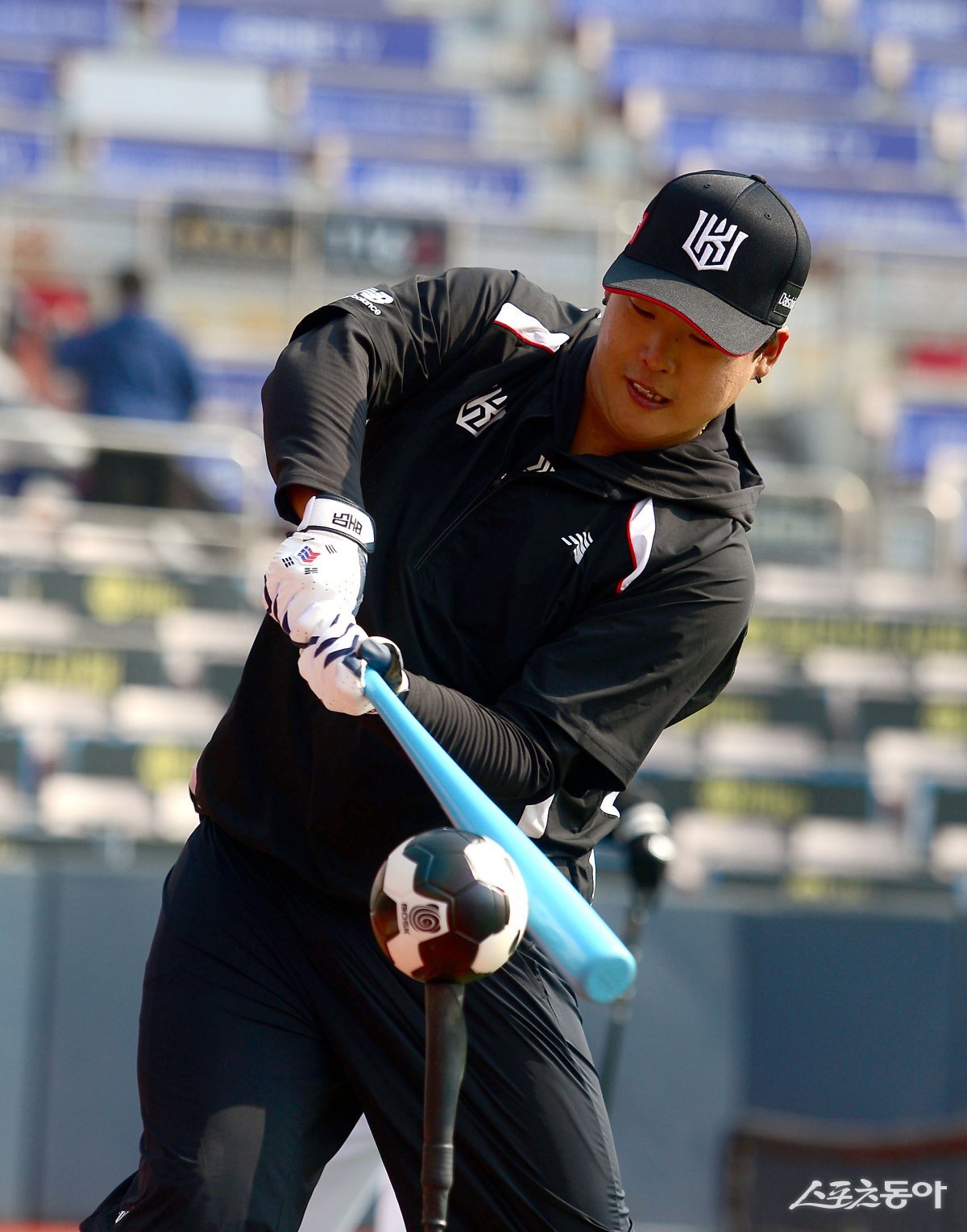 9일 수원KT위즈파크에서 ‘2025 신한은행 SOL뱅크 KBO리그’ 시범경기 LG 트윈스와 KT 위즈 경기가 열린다. KT 강백호가 탸격 훈련을 하고 있다. 수원|김종원 기자 won@donga.com