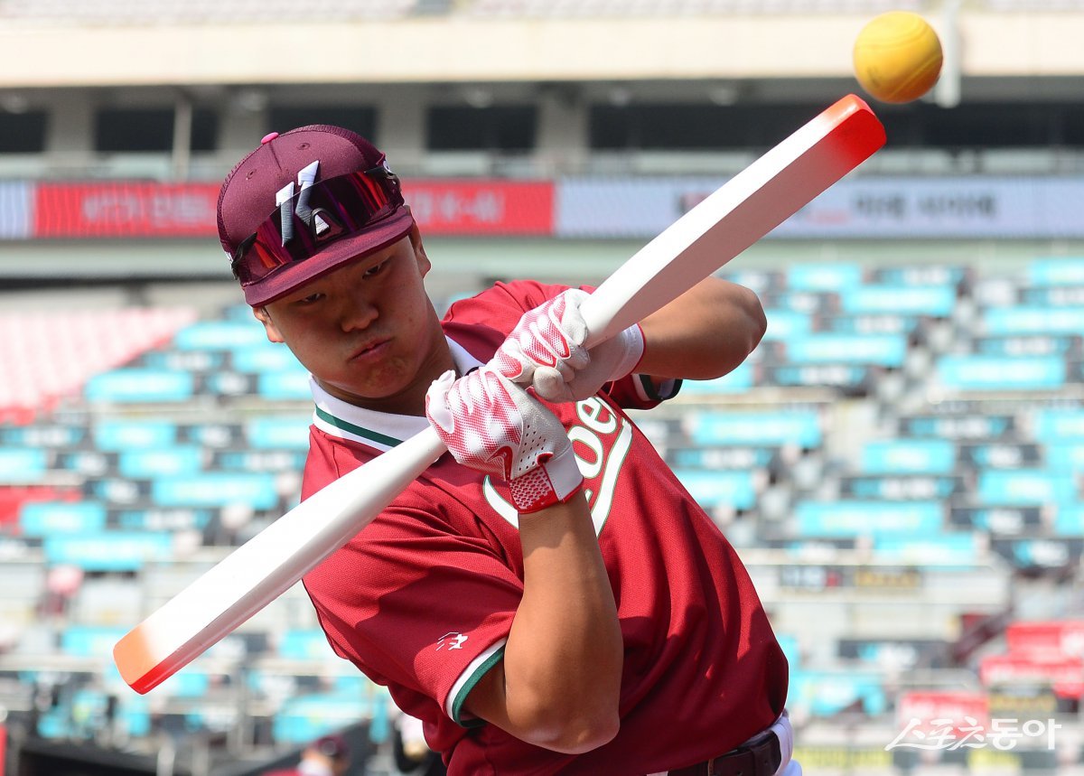 10일 수원KT위즈파크에서 열린 ‘2025 신한 SOL Bank KBO리그’ 키움과 KT의 시범경기에 앞서 키움 김건희가 스핀배트로 훈련을 하고 있다. 수원 | 주현희 기자 teth1147@donga.com
