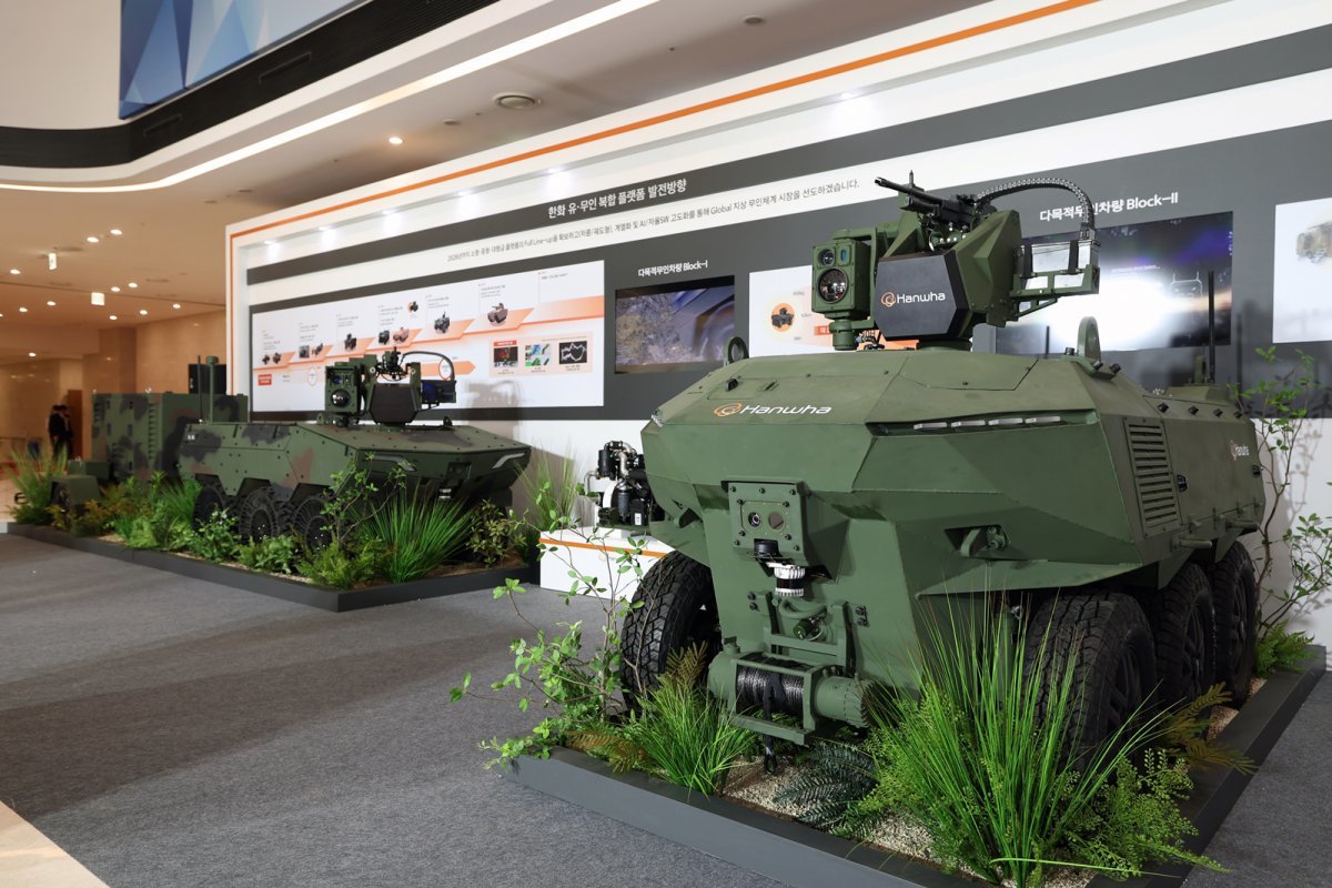 한화는 무인차량(UGV)뿐만 아니라, 한화시스템의 무인수상정(USV)과 저궤도위성 기반 다계층 통합 통신체계, 한화오션의 무인전력 지휘통제함(UMC) 등 다양한 유무인 복합체계를 보유하고 있다.