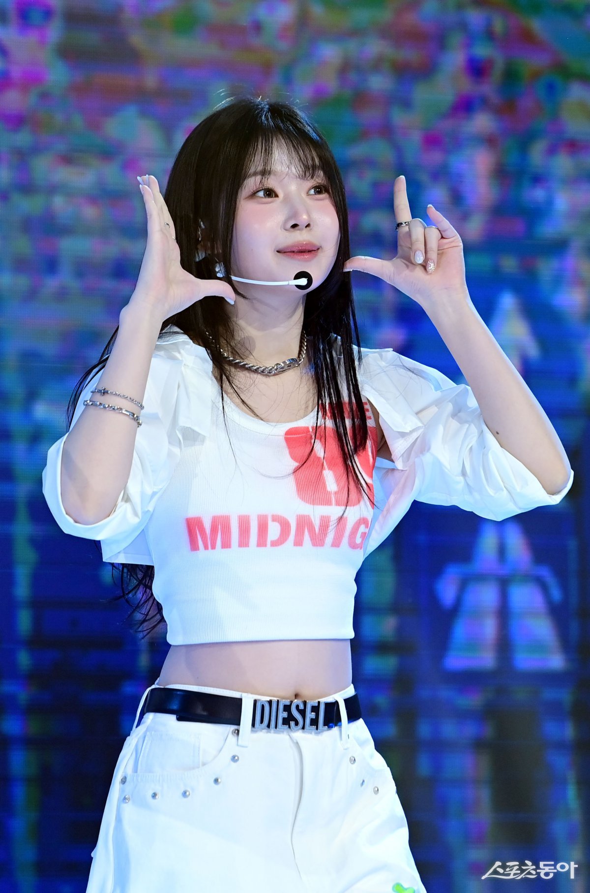 그룹 세이마이네임 도희가 12일 서울 마포구 쇼킹케이팝센터에서 열린 두 번째 EP ‘My Name Is…’ 발매 기념 미디어 쇼케이스에서 타이틀곡 무대를 펼치고 있다. 주현희 기자 teth1147@donga.com
