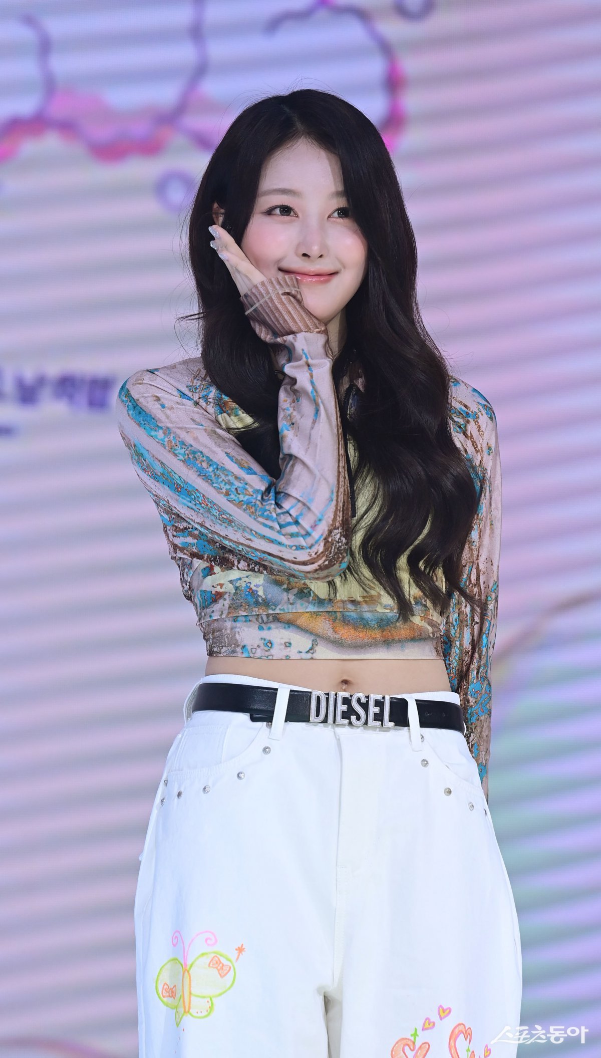 그룹 세이마이네임 소하가 12일 서울 마포구 쇼킹케이팝센터에서 열린 두 번째 EP ‘My Name Is…’ 발매 기념 미디어 쇼케이스에서 포즈를 취하고 있다. 주현희 기자 teth1147@donga.com
