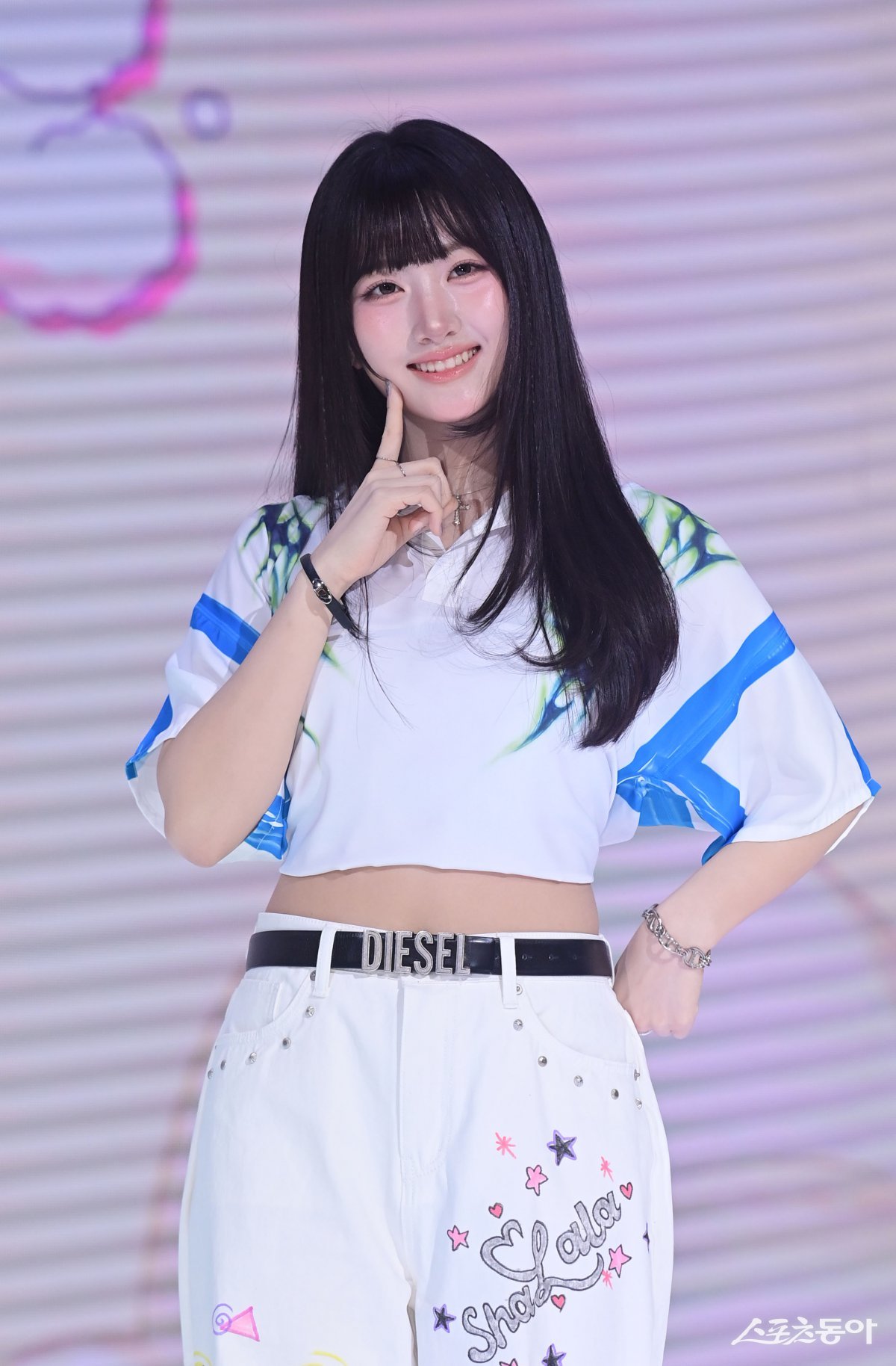 그룹 세이마이네임 준휘가 12일 서울 마포구 쇼킹케이팝센터에서 열린 두 번째 EP ‘My Name Is…’ 발매 기념 미디어 쇼케이스에서 포즈를 취하고 있다. 주현희 기자 teth1147@donga.com