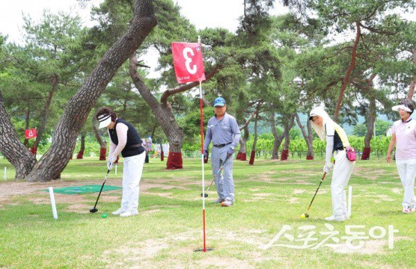 군위군 파크골프장에서 동호인들이 파크골프를 즐기고 있다. 사진제공 ㅣ 군위군