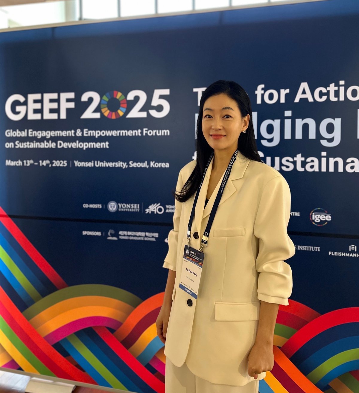 ‘에코맘’ 박진희가 환경을 주제로 한 국제 행사 ‘제7회 글로벌지속가능발전포럼’(GEEF 2025) 초청 연사로 나섰다. 13일과 14일 연세대학교에서 개최된 포럼에서 박진희는 13일 오전 연사로 무대에 서 기후 위기 해소를 위한 대중 일상의 변화, ‘행동 촉진’을 호소했다.